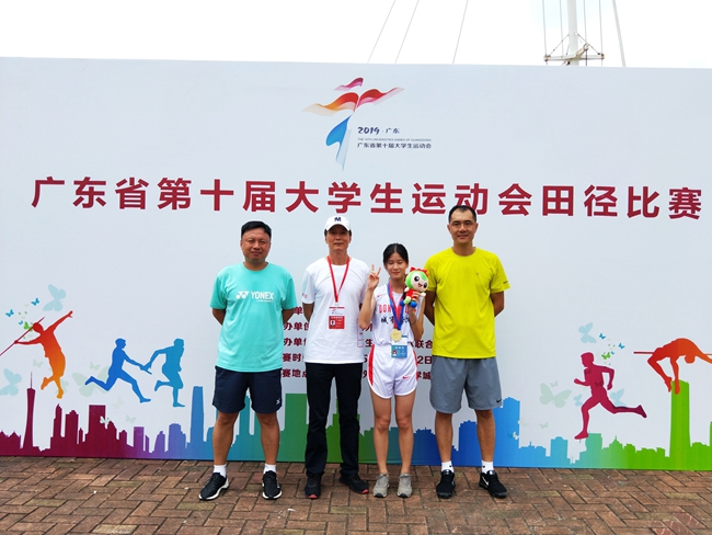 今日上午,在广东省第十届大学生运动会田径女子甲组(本科公共体育组)跳远比赛中,外国语学院叶翠诗同学以5.05m的好成绩摘得冠军。这是伟德官网在广东省大学生运动会上获得的第一枚金牌。