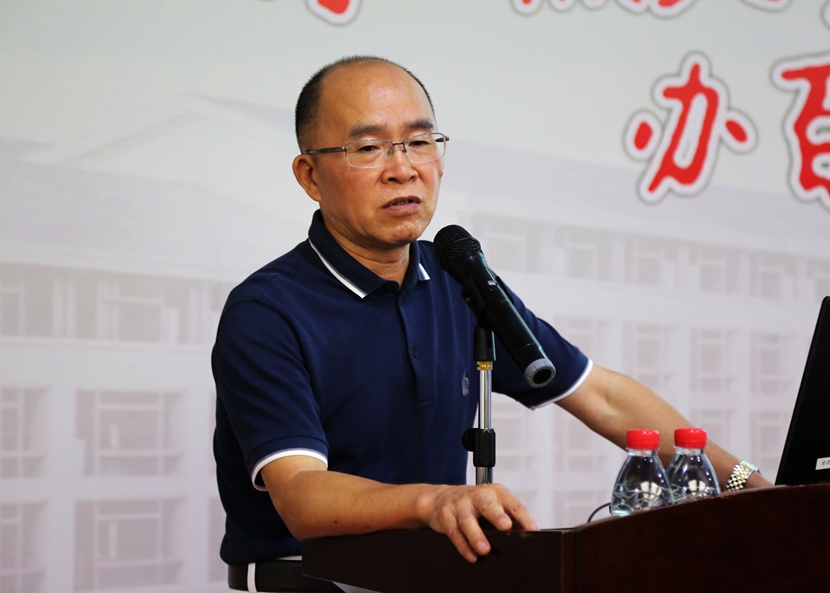 王卫平校长作了学校工作报告,总结了2018-2019学年“政治建设与党建工作、人力资源管理机制改革、教育教学工作改革、学生工作体系改革、后勤保障体系改革”等重点工作的完成情况,对下学年重点工作提出了构想和思路。