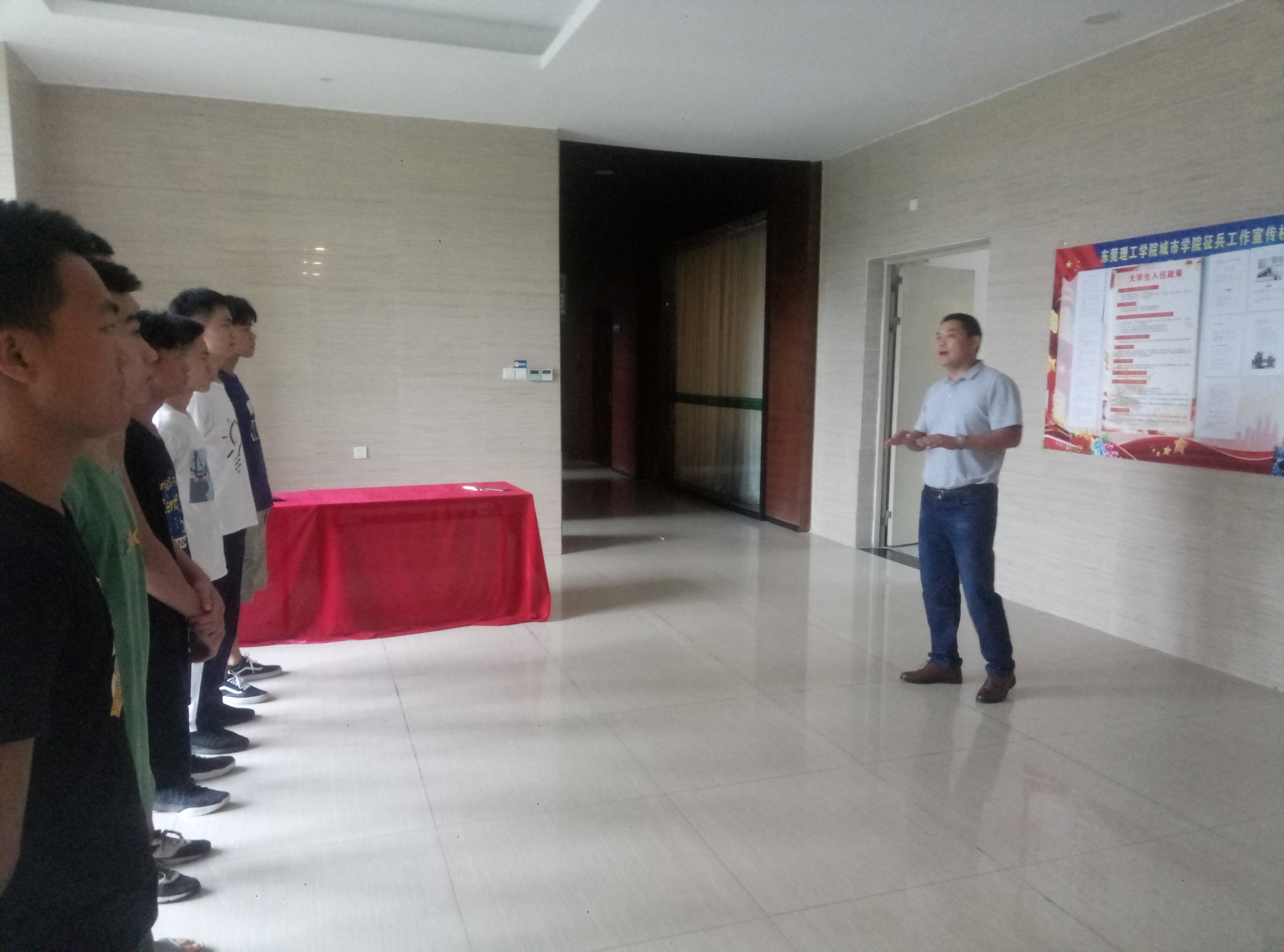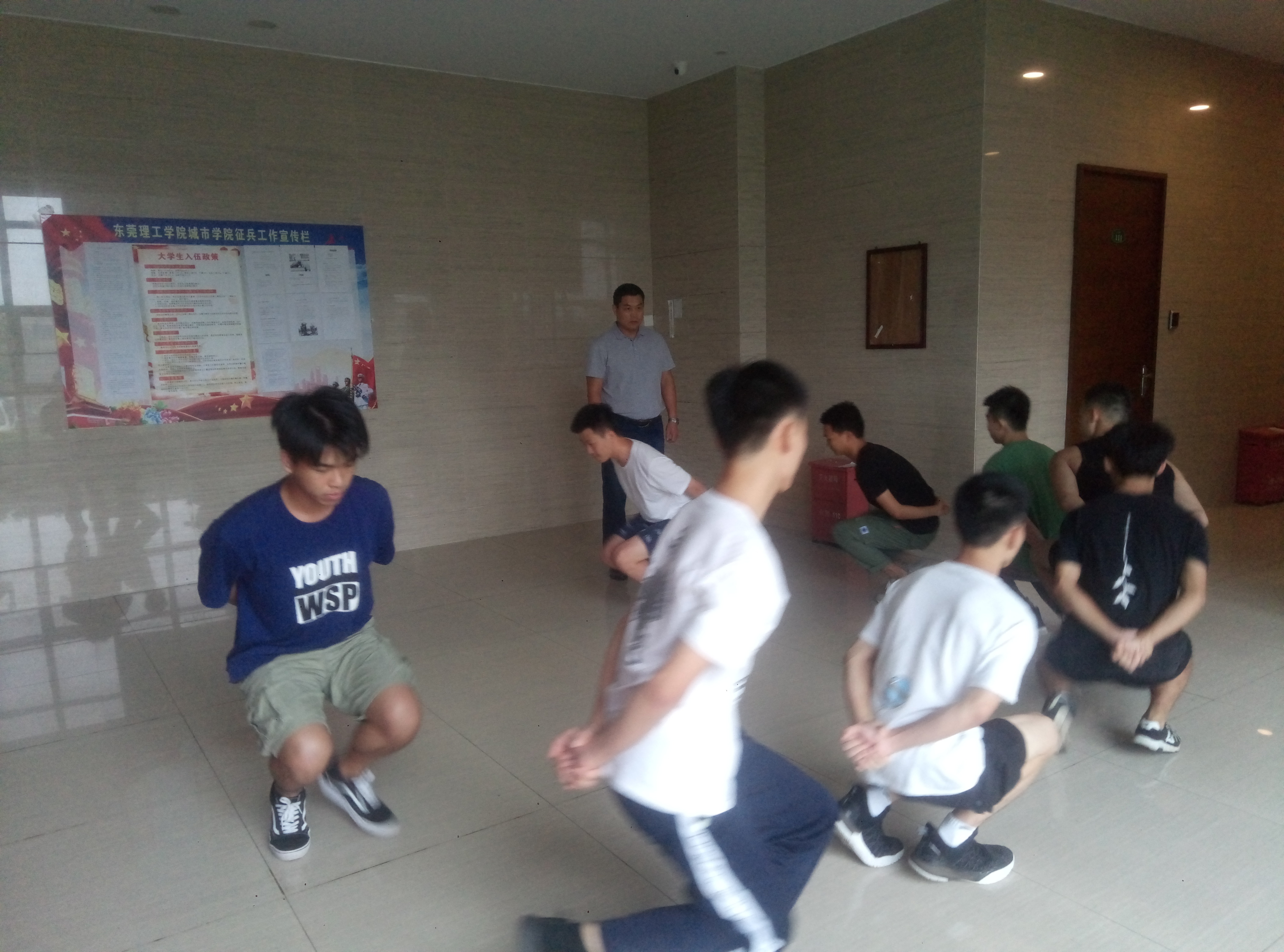 根据东莞市征兵办计划安排,8月3日起,伟德官网在校内开展应征入伍役前训练。校后勤保卫处副处长、征兵工作站站长刘维仝以及征兵工作站凌继峰老师参训。