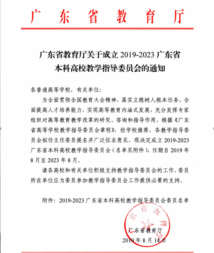 日前,广东省教育厅发布了成立2019-2023广东省本科高校教学指导委员会通知,伟德官网共有三位教授被省教育厅聘任为2019-2023年广东省本科高校教学指导委员会委员,他们是:赖忠孝教授被聘为“广东省本科高校经济与贸易类专业教学指导委员会委员”、宋秋敏教授被聘为“广东省本科高校中国语言文学类专业教学指导委员会委员”、张佺举教授被聘为“广东省本科高校物流管理与工程类专业教学指导委员会委员”。