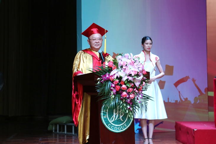 (学校董事长麦照容在毕业典礼上致辞)