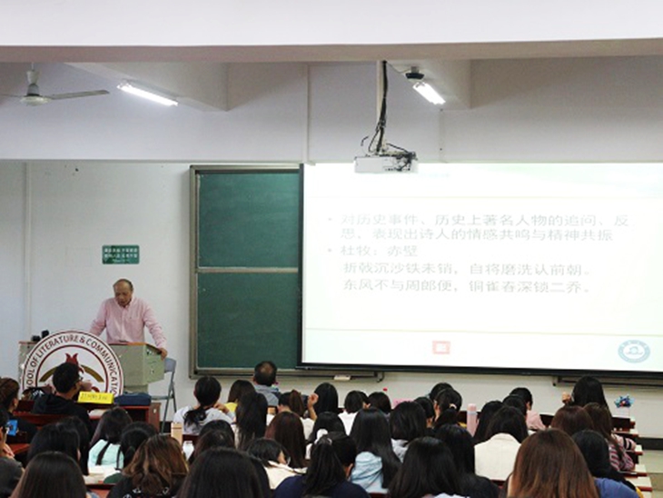 为了普及诗词知识、了解古人的生活、领略诗词之美, 11月20日下午,由广东省作家协会主席、原暨南大学党委书记蒋述卓教授主讲的《中国古典诗词的生命精神与哲学智慧》讲座在7B209举行。此次讲座是伟德官网举办的中华美育传承系列活动之一。