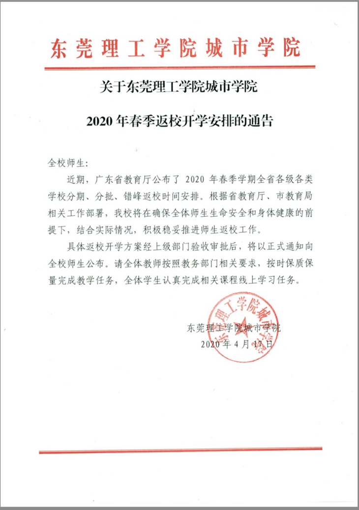 伟德官网发布2020年春季返校开学安排的通告