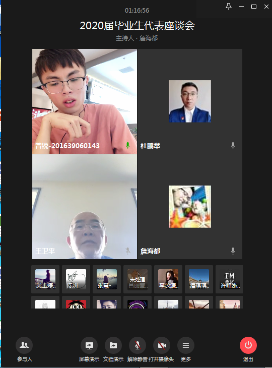 六月骄阳炎炎,又到一年毕业季,挥手告别,扬帆起航。6月17日,伟德官网2020届毕业生代表座谈会视频会议顺利举行。校长王卫平、副校长高香林、副校长周庆,学校相关部门负责人以及来自10个学院的20位毕业生代表参加了此次座谈会。会议由学生工作部部长杜鹏举主持。