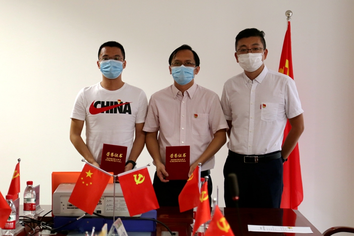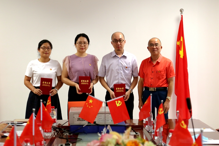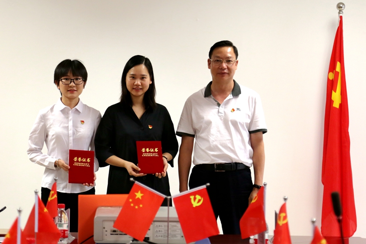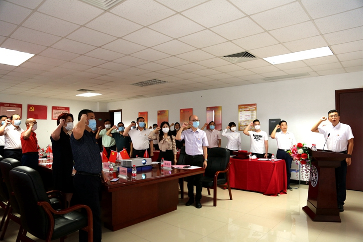 在嘹亮的国歌声中,庆祝大会拉开序幕。在党委委员杜鹏举同志的领誓下,与会党员重温入党誓词。