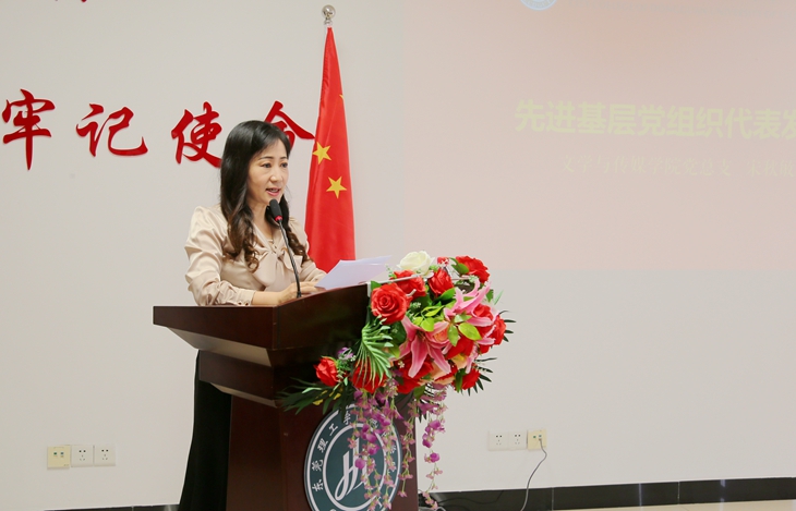 先进基层党组织代表,文学与传媒学院党总支书记宋秋敏同志表示,学院党组织在常态中寻求创新和突破,不断增强党员的党性修养。我们将继续紧跟党的号召,聚焦思想引领,建设党建文化长廊,引导广大学子从中国优秀传统文学中寻文化之根。