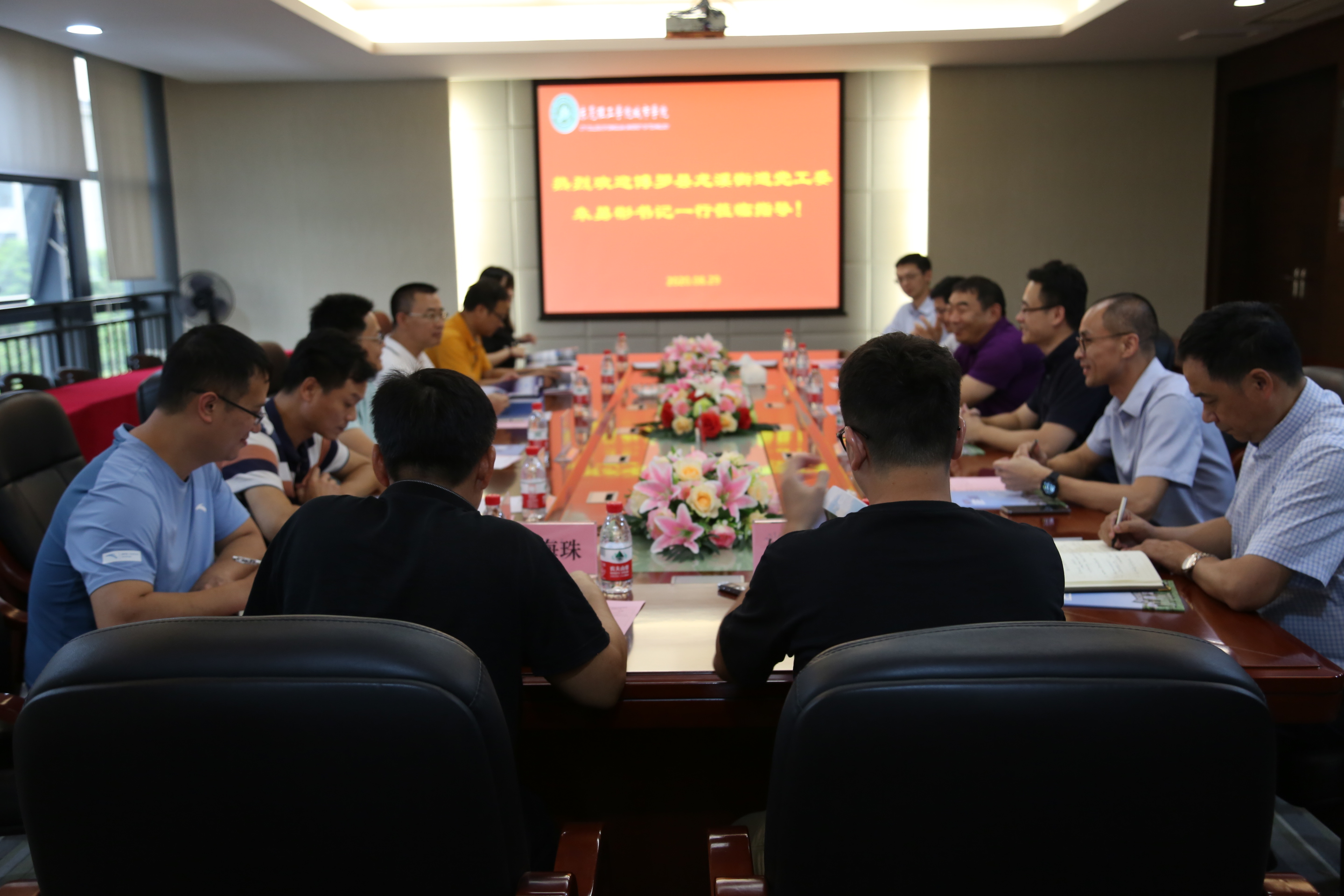 董事长代表、教育集团总经理陈超群,副总经理韩春华;城市学院教务处处长赵书山,惠州鸿卓公司董事长助理麦子晔,鸿卓公司总经理李丰收,副总经理邓国勋,鸿发集团投资发展部副总监刘煜明等热情接待了来访嘉宾,并陪同参观了校园环境、图书馆、商科实训中心、综合馆、田径场、8A实训室,随后在行政楼505会议室举行座谈会。