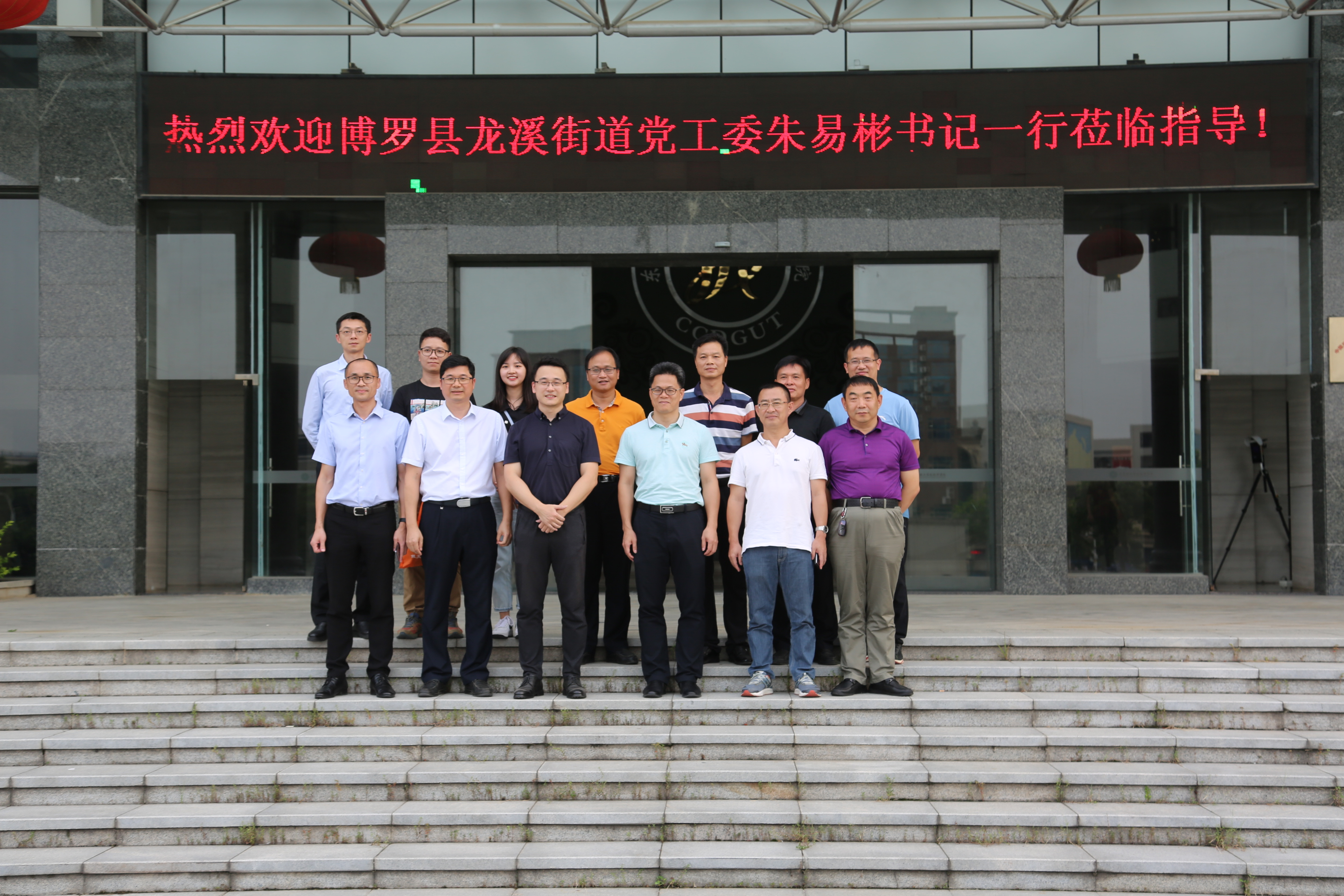 8月29日下午,惠州市博罗县龙溪街道党工委书记朱易彬,党工委副书记、街道办主任陈炳培,党工委委员张玉灵,龙溪街道办副主任(分管招商)高志芳,党政办主任李涛,经济办主任尹倩靓,文教办主任刘海珠,党政办秘书钟玉堂等领导嘉宾一行莅临伟德官网考察交流。