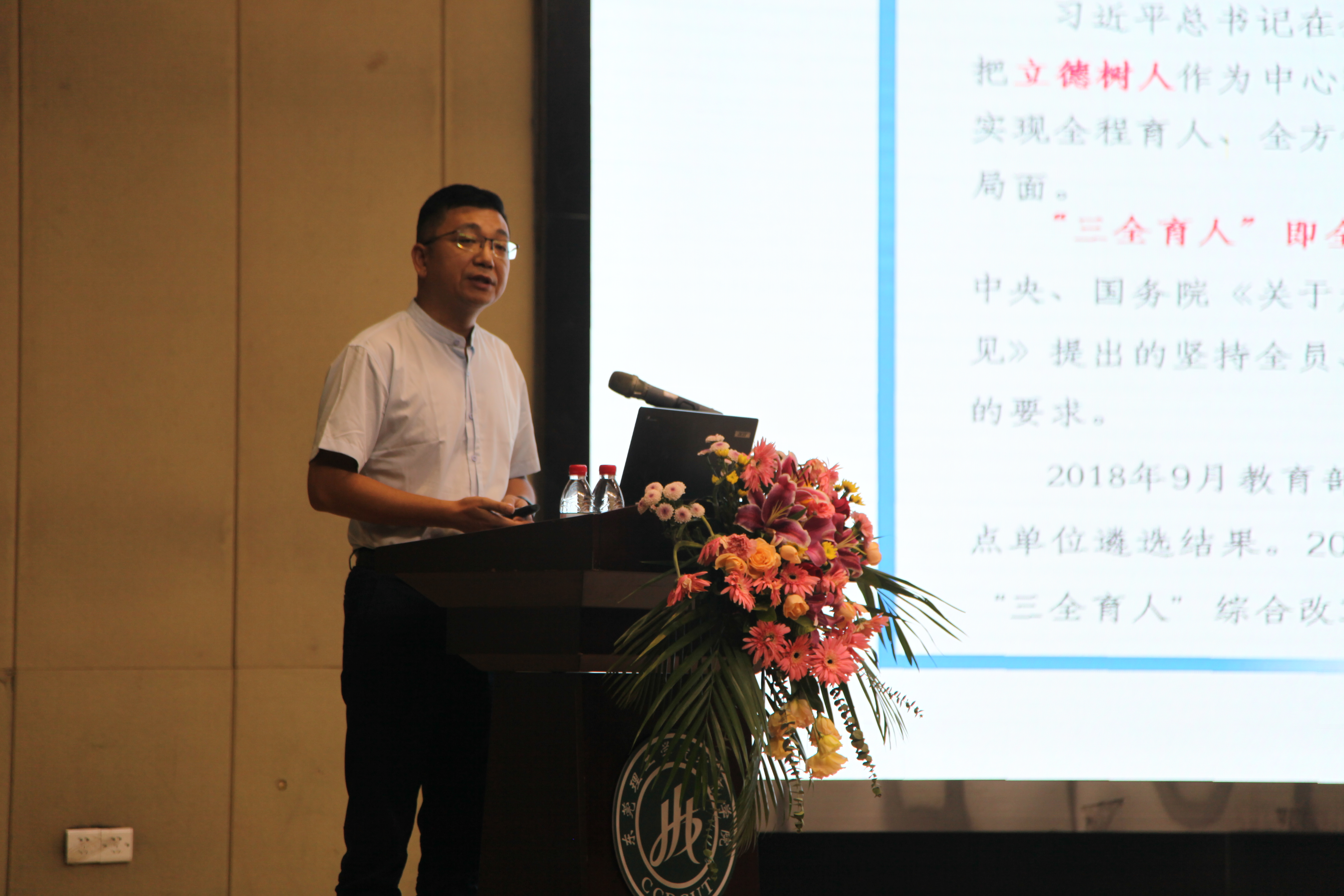 学生处处长杜鹏举就《新时代中国特色社会主义高校育人体系——三全育人》向在座中层干部,分享了三全育人的“育人目标”“育人理念”,根据十项对标标准,讲解了“三全育人”综合改革试点工作实施方案,提出要以新思政观引领改革,构建一体化育人体系,打通育人“最后一公里”,切实做足育人大文章,唱响育人最强音。