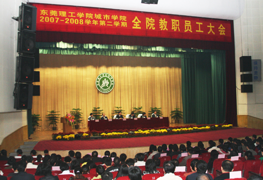 2月28日,学院在大礼堂隆重召开2007—2008学年度第二学期教职工大会。东莞理工学院副院长、城市学院院长安少华教授总结2007年工作,部署2008年工作任务,党委书记朱志德副研究员就学院今年党务工作发表了重要讲话。大会还隆重举行了2007年度学院“十大工作创新奖”及“校园教工十佳”颁奖仪式。