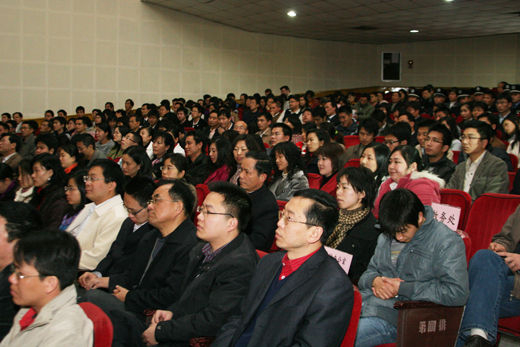 会议首先举行2007年度学院“十大工作创新奖”及2007年度“校园教工十佳”颁奖仪式。学术副院长程发良教授、党委副书记朱冰同志分别宣读学院的表彰决定,院领导分别为获奖项目、获奖者颁发了荣誉证书和奖金。获奖者手捧鲜花与奖状,接受全体教职工的祝贺。