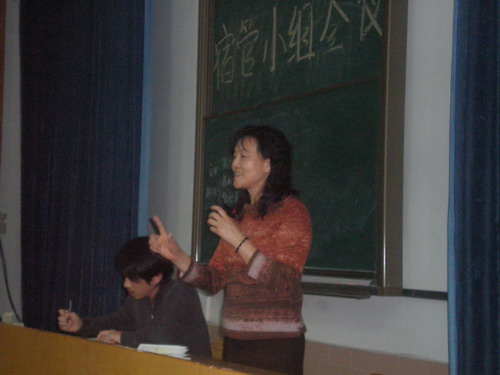 会上,学生处赵秋萍老师要求各班要认真抓好宿舍的纪律和卫生,对不遵守宿舍管理规定而晚归的同学要做好记录,及时通知各系的宿舍管理负责人,并做出相应的处分。自律会要适时进行抽查,杜绝晚归现象。本学期即将开展的活动有:举行党员宿舍挂牌仪式,进行三次全院性的卫生大检查,继续开展“宿舍美化设计大赛”和“五星级宿舍”评比活动。