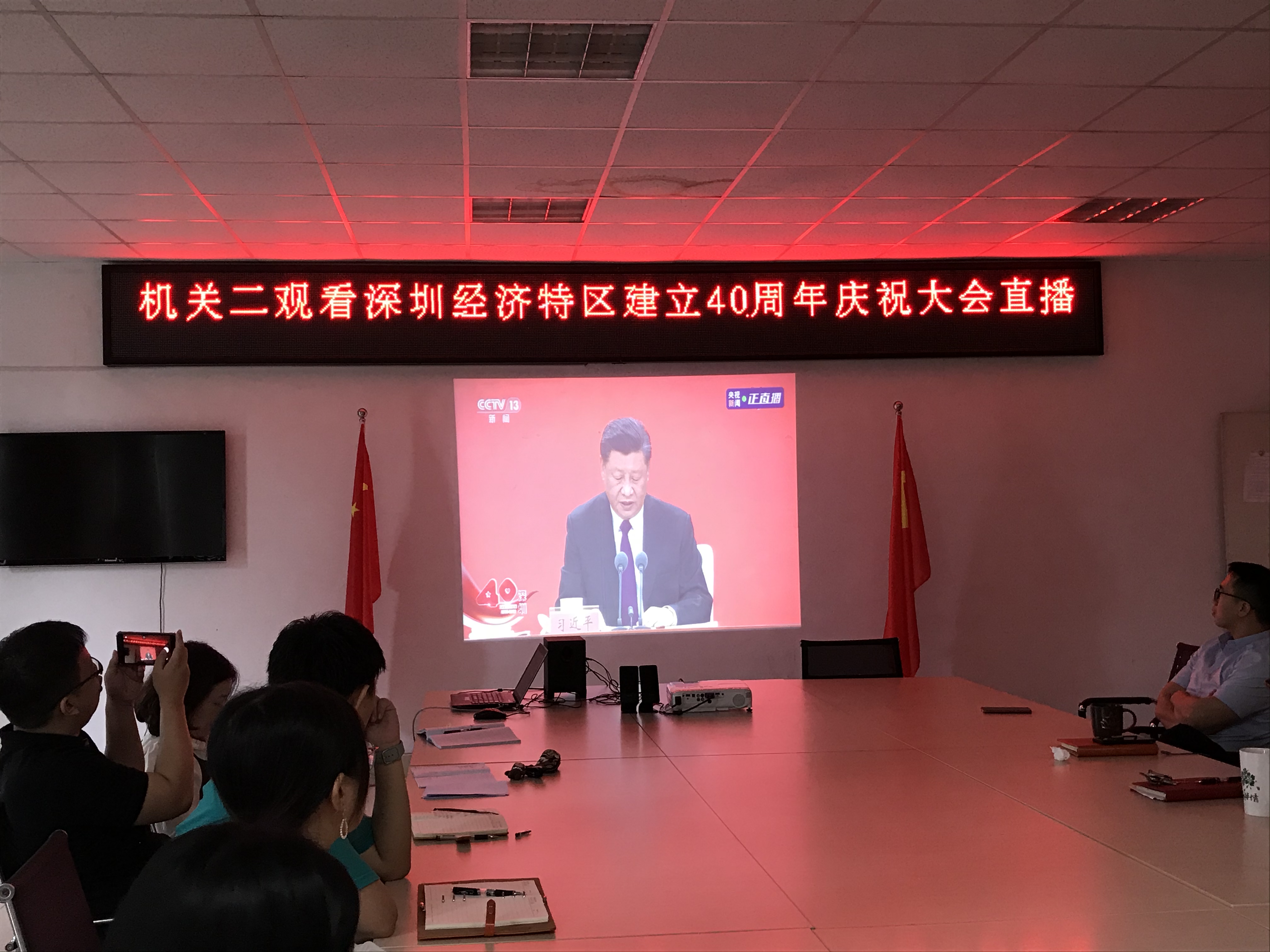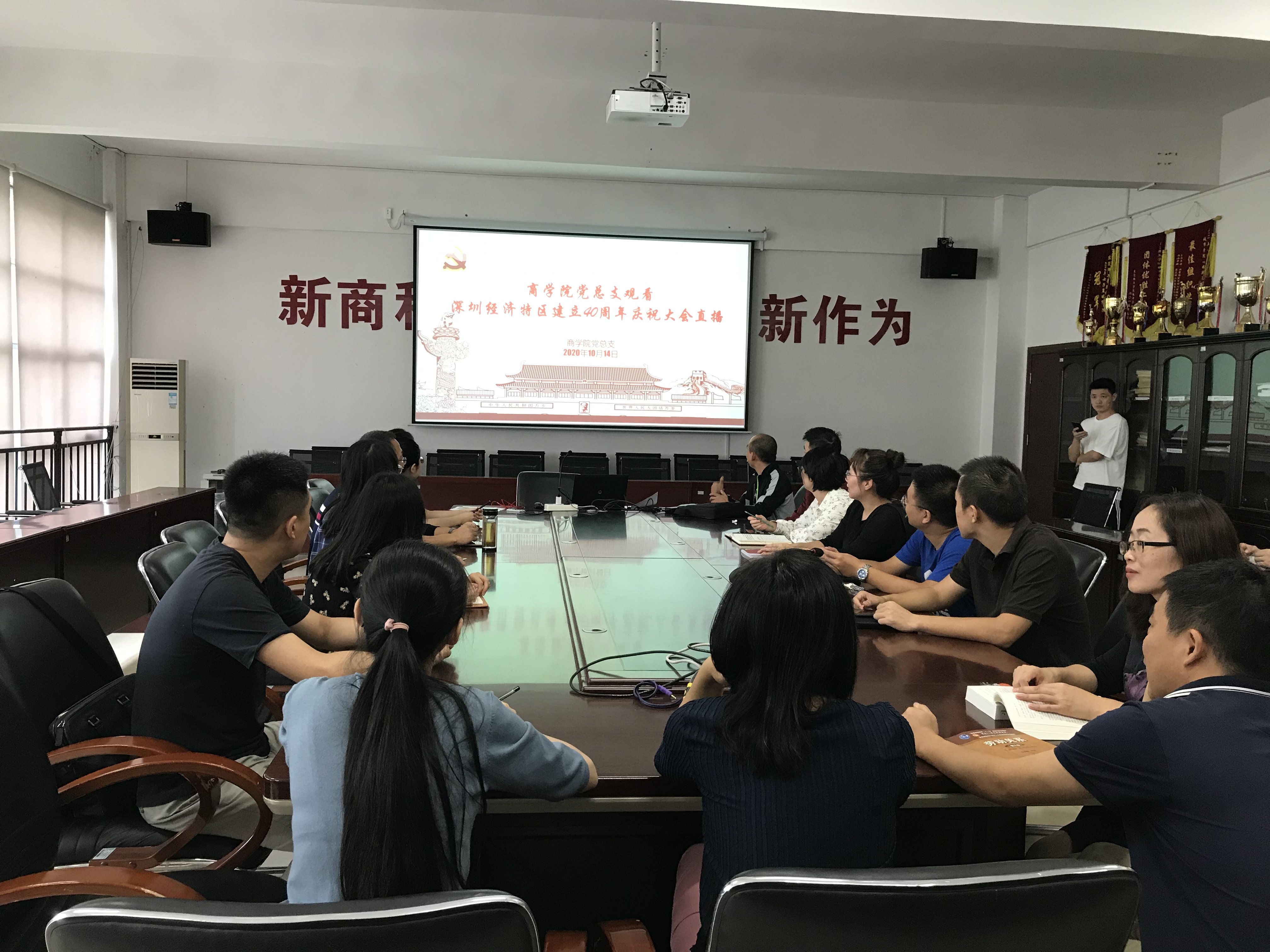 10月14日上午,深圳经济特区建立40周年庆祝大会在广东省深圳市隆重举行,中共中央总书记、国家主席、中央军委主席习近平出席大会并发表重要讲话。伟德官网党委认真组织广大党员干部收看直播。收看分为主会场与分会场。学校党委委员、校领导以及各单位负责人在行政楼212会议室集中收看庆祝大会直播,各党总支、直属支部在自己的分会场收看直播。