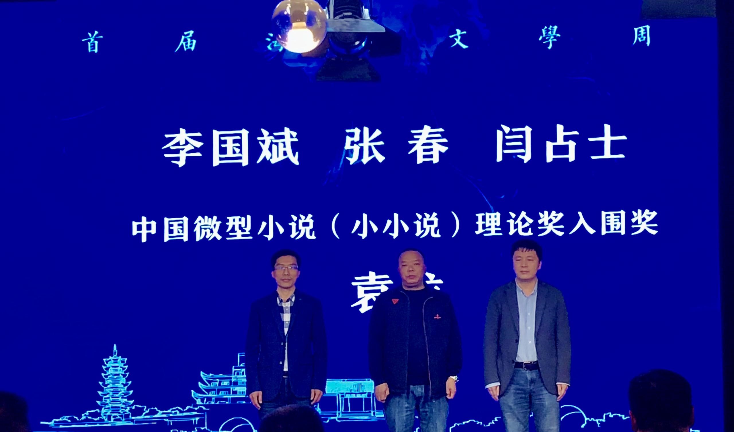 近日,中国微型小说理论研讨会暨理论奖颁奖典礼系列活动在浙江宁波举行。24日下午,来自全国各地的微型小说理论评论学者、作家、杂志编辑以及当地作者80余人聚首南塘老街城南书院参加颁奖典礼。会上,伟德官网文学与传媒学院李国斌老师荣获首届中国微型小说理论奖。