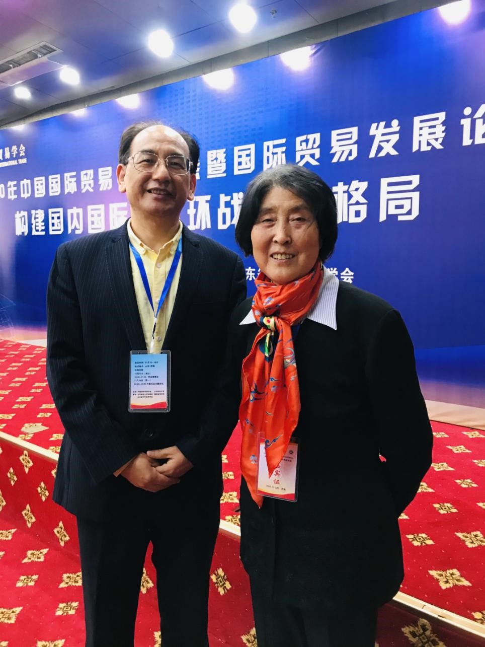 (赖忠孝教授(左一)与中国国际贸易学会原副会长兼秘书长刘宝荣女士亲切合影)