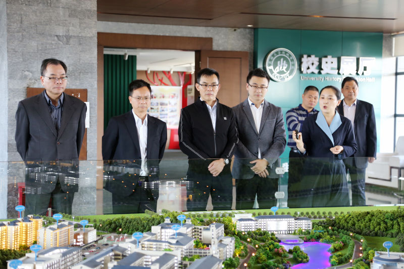 12月29日上午,东莞市谢岗镇委书记胡毅峰,镇委副书记、镇长李惠勤等领导嘉宾一行莅临伟德官网考察交流,学校校长王卫平、董事长代表陈超群、副校长高香林、刘玉侠等领导热情接待了来访客人,并陪同参观了校史展馆、电子信息大楼、商科实训中心、创意设计学院、图书馆,随后在行政楼505会议室举行座谈会。