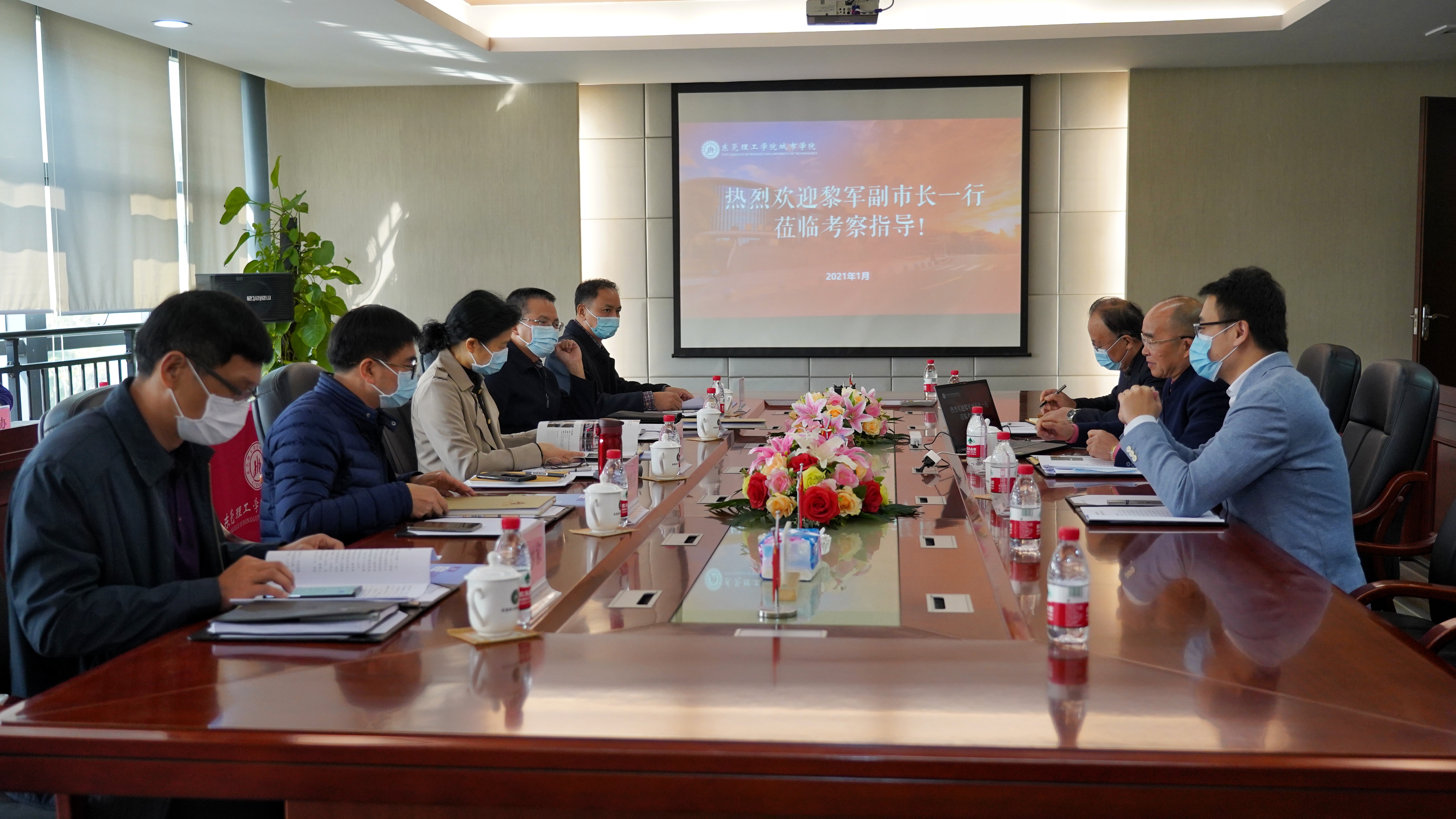 2021年1月15日上午,东莞市副市长黎军一行五人莅临伟德官网实地考察学校转设及疫情防控工作。学校董事长代表陈超群、校党政领导班子参加座谈会并陪同调研。