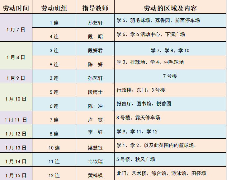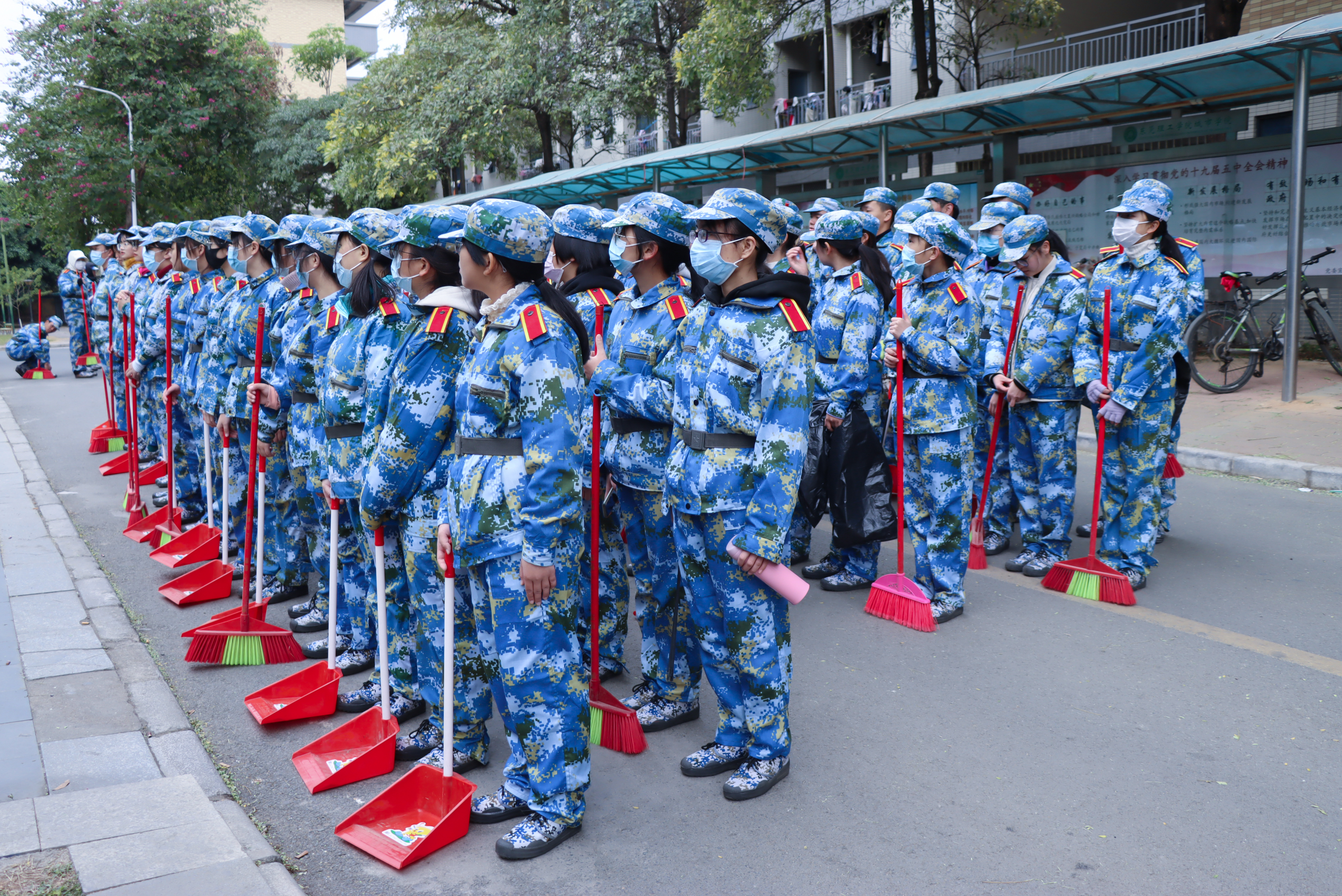 从1月7日开始,军训新生在各指导老师的带领下,对全校进行了卫生大扫除。同学身着军训服,热情高涨,在各连的指导员和相关老师的带领下,对学校行政大楼、图书馆、教学楼、实训室等进行清理打扫。他们分工明确、通力合作,不放过任何卫生死角,发扬着不怕苦、不怕累、不怕脏的军人精神。