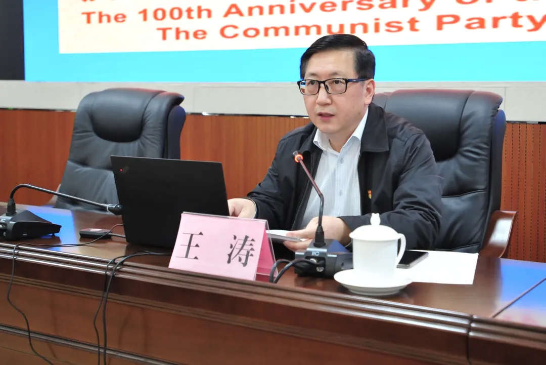 王涛围绕深入学习领会习近平总书记关于党的历史的重要论述,树立正确的党史观;深入学习领会中国共产党的奋斗历程和重要经验,汲取前进的智慧力量两大部分进行阐述。他提出,必须坚持党性原则和科学精神的有机统一,站在党和人民立场上认识和对待党的历史;必须坚持党的实事求是的思想路线,坚持历史的观点、实践的观点和辩证唯物的观点,正确看待党所走过的道路;必须坚持正确处理政治与学术、历史与现实、研究与宣传的关系的要求,旗帜鲜明地反对历史虚无主义,真正学习好、研究好、宣传好、捍卫好党的百年历史。要深入学习领会中国共产党的奋斗历程和重要经验,汲取前进的智慧力量,不断提高“看大局”的政治判断力,在党史学习教育中不断提高“谋大势”的政治领悟力,在党史学习教育中不断提高“抓落实”的政治执行力。