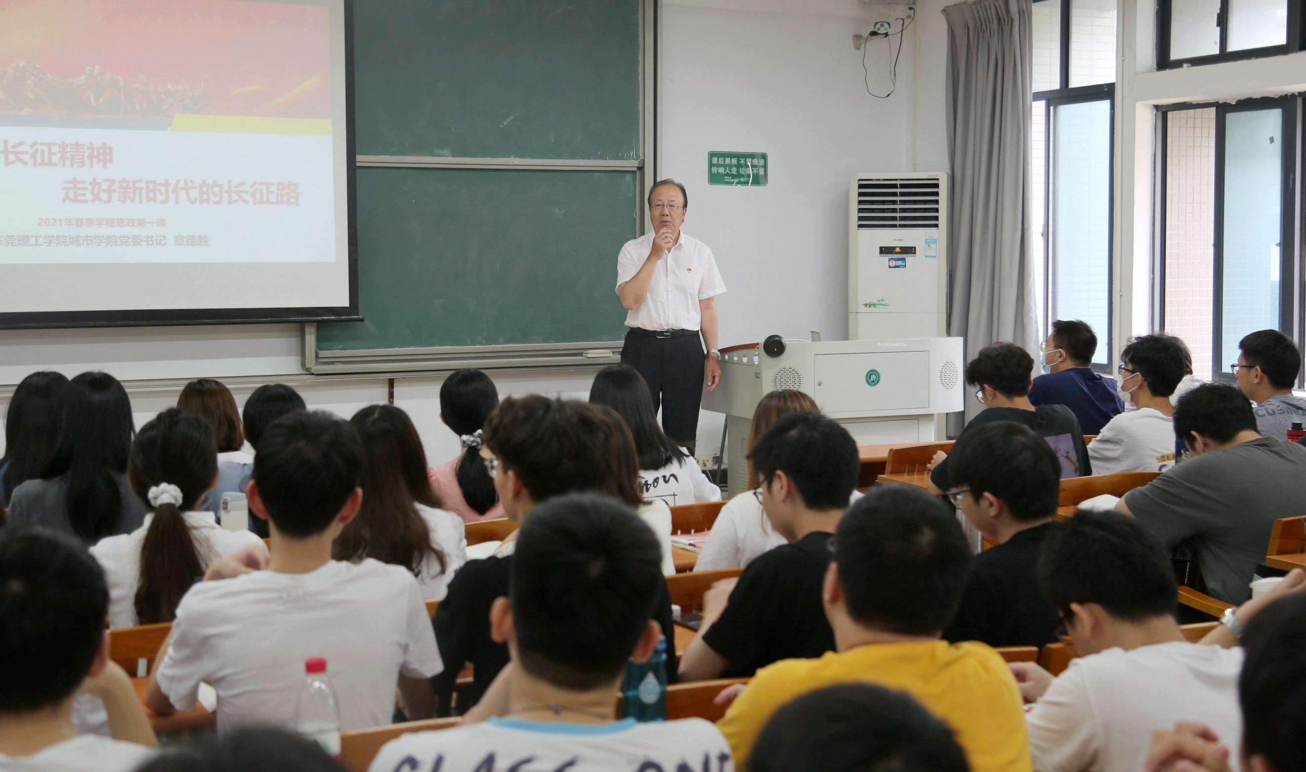 课堂上,同学们聚精会神、全神贯注地听讲。章德胜强调,长征精神有乐于吃苦、勇于战斗、重于求实和善于团结的内涵。它带领广大共产党人实现了中国共产党和中国革命事业从挫折走向胜利的伟大转折,也开启了中国共产党为实现民族独立,人民解放而斗争的新的伟大进军。这一伟大革命英雄主义精神,值得我们代代相传。