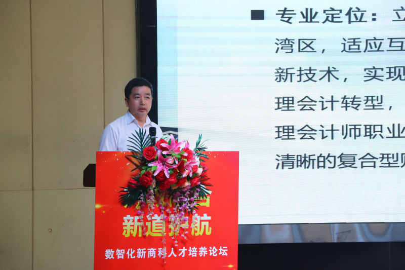 校长王卫平教授发表致辞。他对各位嘉宾、专家学者的到来表示热烈的欢迎。他介绍了学校教学、科研的基本情况,特别是伟德官网国家级和省级一流本科专业在立德树人、专业建设等方面取得的长足进步。学校与新道有限公司合作,开设云财务班,成功共建了广东省商科中心,实现合作双赢。希望未来进一步开展校企、校校合作,共同提升数智化时代商科人才的培养质量。