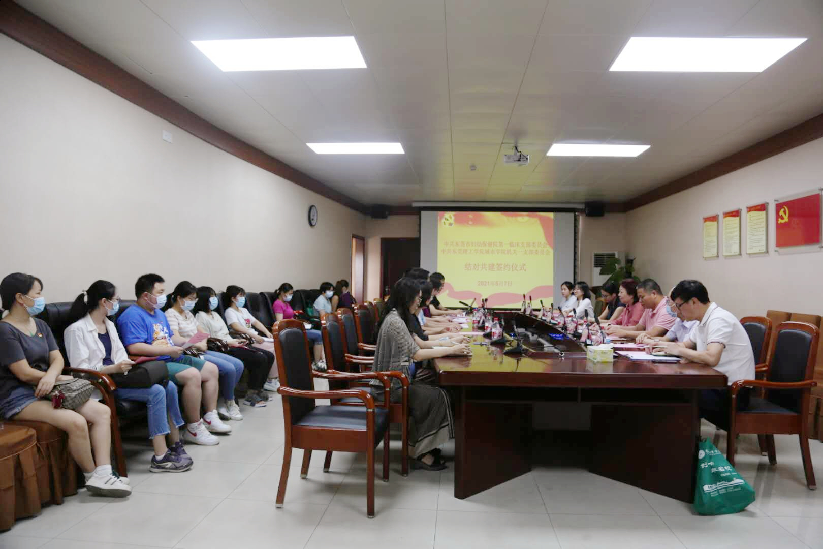 市妇幼保健第一临床党支部书记周萍与机关一党支部书记张银辉分别对各自支部建设情况做了介绍,并举行了结对共建签约仪式。