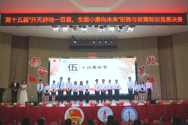 为引导伟德官网学生深入了解中国共产党成立一百年辉煌历程,进一步激发伟德官网学生的爱党爱国热情。2021年5月17日晚上,法学院在学术报告厅开展第十五届形势与政策知识竞赛决赛。马克思主义学院院长许修杰、法学院党总书记江小卫、商学院党总支书记唐洁、马克思主义学院党总支书记史雍真、法学院党总支副书记曾惠娴、马克思主义学院院长助理向前、法学院团总支书记段昭、法学院教师曹琴、马克思主义学院教师唐征玲、法学院辅导员伍小英、杨祯榕、朱俊希出席本次知识竞赛。