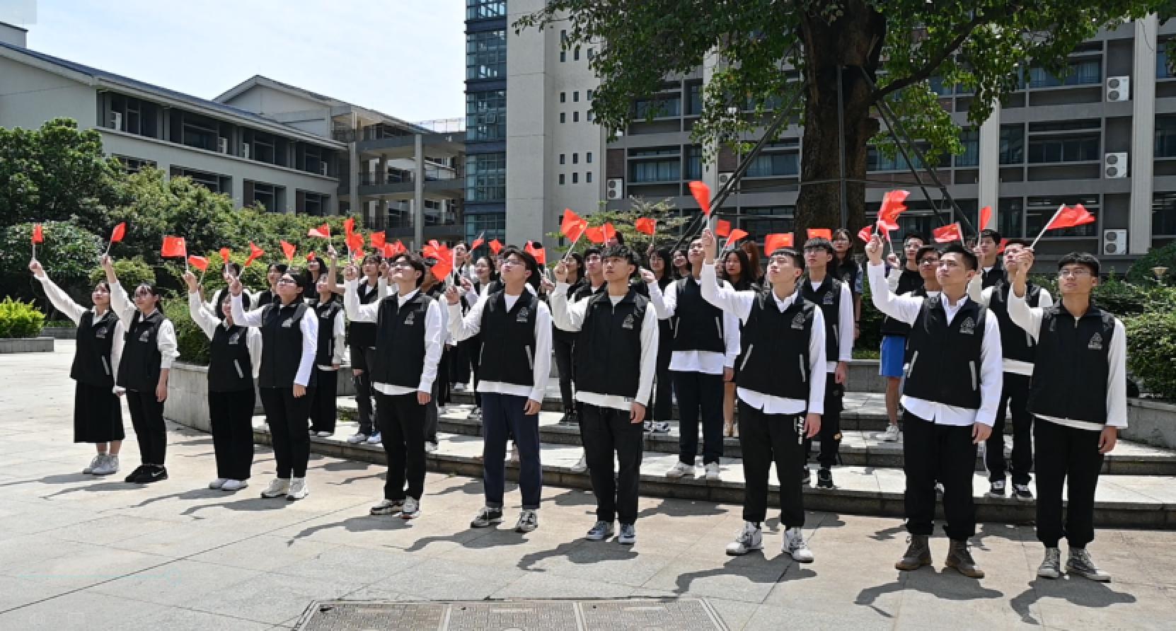 “五星红旗,你是我的骄傲” 为庆祝中国共产党建党100周年,热情讴歌我们伟大的党、伟大的祖国,5月7日,在创意设计学院院长王锦锋、党总支书记、何帅,副书记范琪以及辅导员们带领下,师生们手持小红旗,开展快闪活动,齐声同唱《红旗飘飘》,共同表达对党的热爱和祝福。