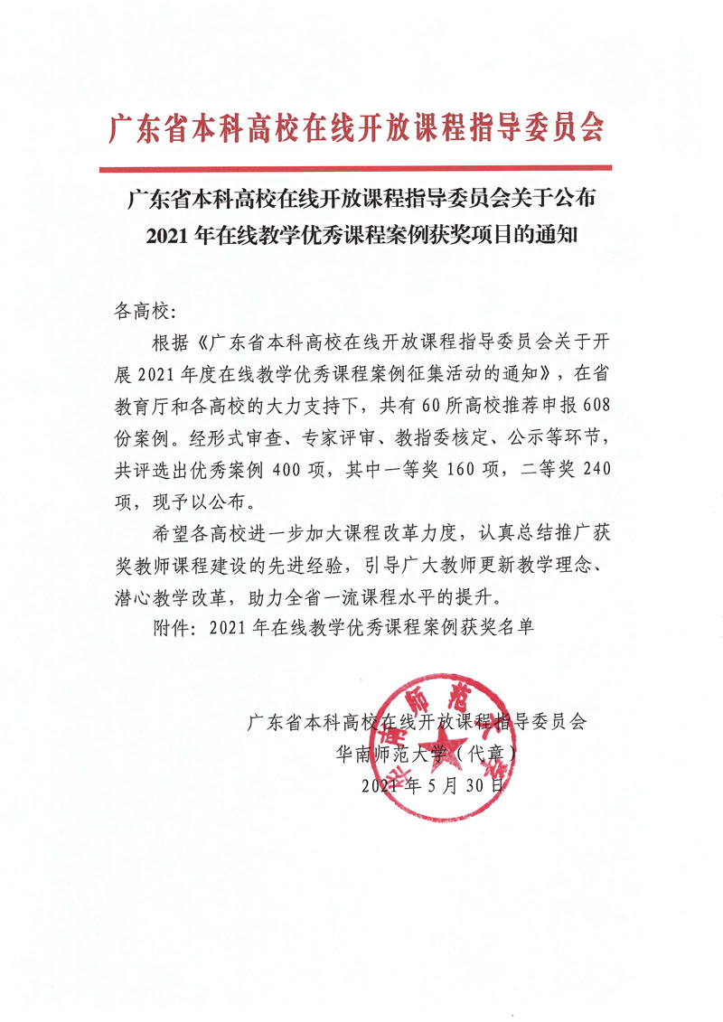 近日,广东省本科高校在线开放课程指导委员会公布2021年在线教学优秀课程案例获奖项目名单,伟德官网智能制造学院彭见辉、杨玉春老师的教学案例荣获一等奖。