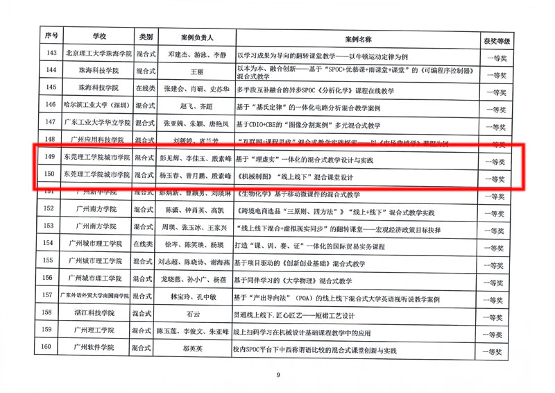 2021年在线教学优秀课程案例征集活动由广东省本科高校在线开放课程指导委员会主办,在广东省教育厅和各高校的大力支持下,共有60所高校推荐申报了608份案例,经过审核、核定、公示等环节,最终评选出优秀案例一等奖和二等奖。智能制造学院的彭见辉、李佳玉、殷素峰老师的“基于‘理虚实’一体化的混合式教学设计与实践”案例,以及杨玉春、曾月鹏、殷素峰老师的“《机械制图》‘线上线下’混合课堂设计”案例从608份案例中脱颖而出被评为一等奖。