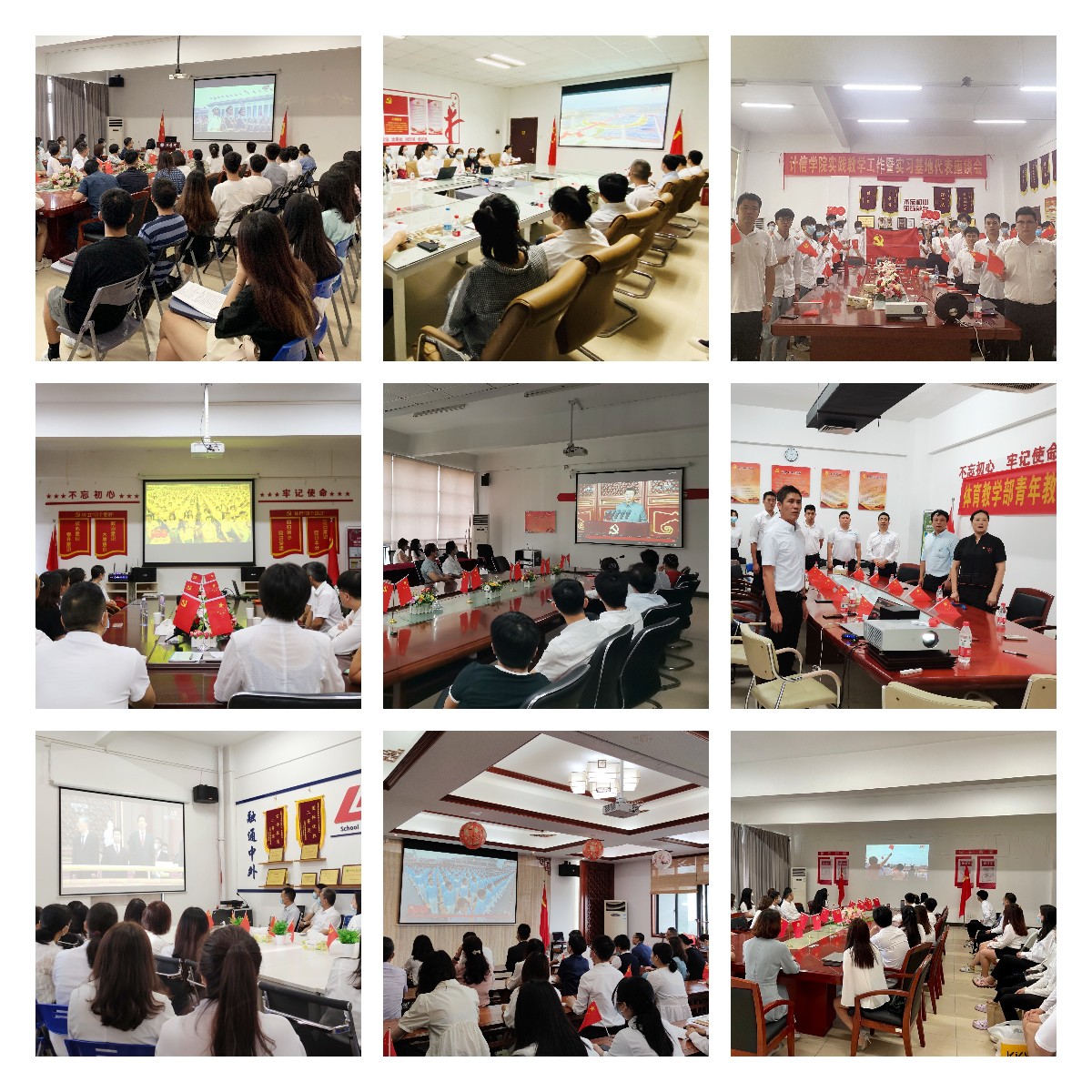 学校党委书记章德胜,校长王卫平,党委副书记、副校长高香林、黄兢,副校长刘玉侠等领导和机关一党支部成员在行政楼6楼会议室集中收看大会电视直播盛况。学校同时在各二级学院设有分会场。
