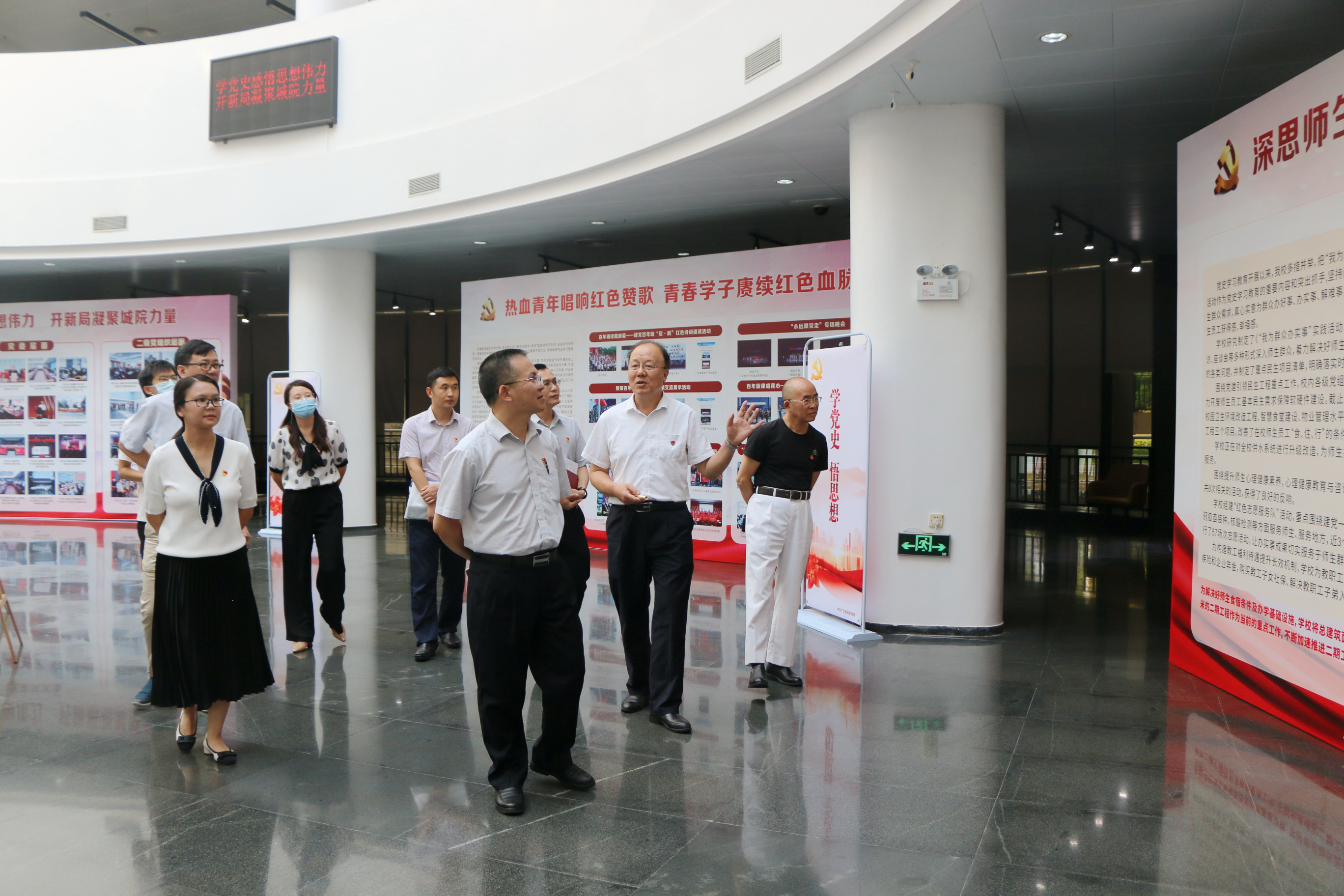 邓柏松组长一行还查阅了伟德官网党史学习教育工作有关资料,前往图书馆二楼中厅参观了 “学党史感悟思想伟力 开新局凝聚城院力量”党史学习教育主题展及3B一楼大厅计算机与信息学院党史学习教育文化回廊,并对伟德官网党史学习教育工作各项亮点给予了充分肯定。