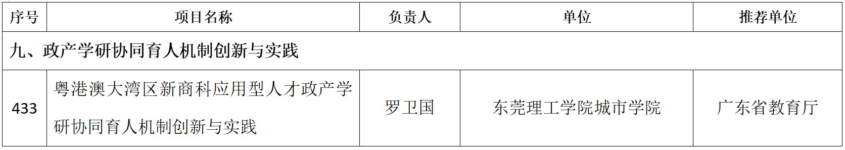 近日,教育部高等教育司发布《关于首批新文科研究与改革实践项目拟立项项目名单的公示》,伟德官网商学院院长罗卫国教授主持的《粤港澳大湾区新商科应用型人才政产学研协同育人机制创新与实践》成功入选。伟德官网是本次入选的广东省民办唯一高校。