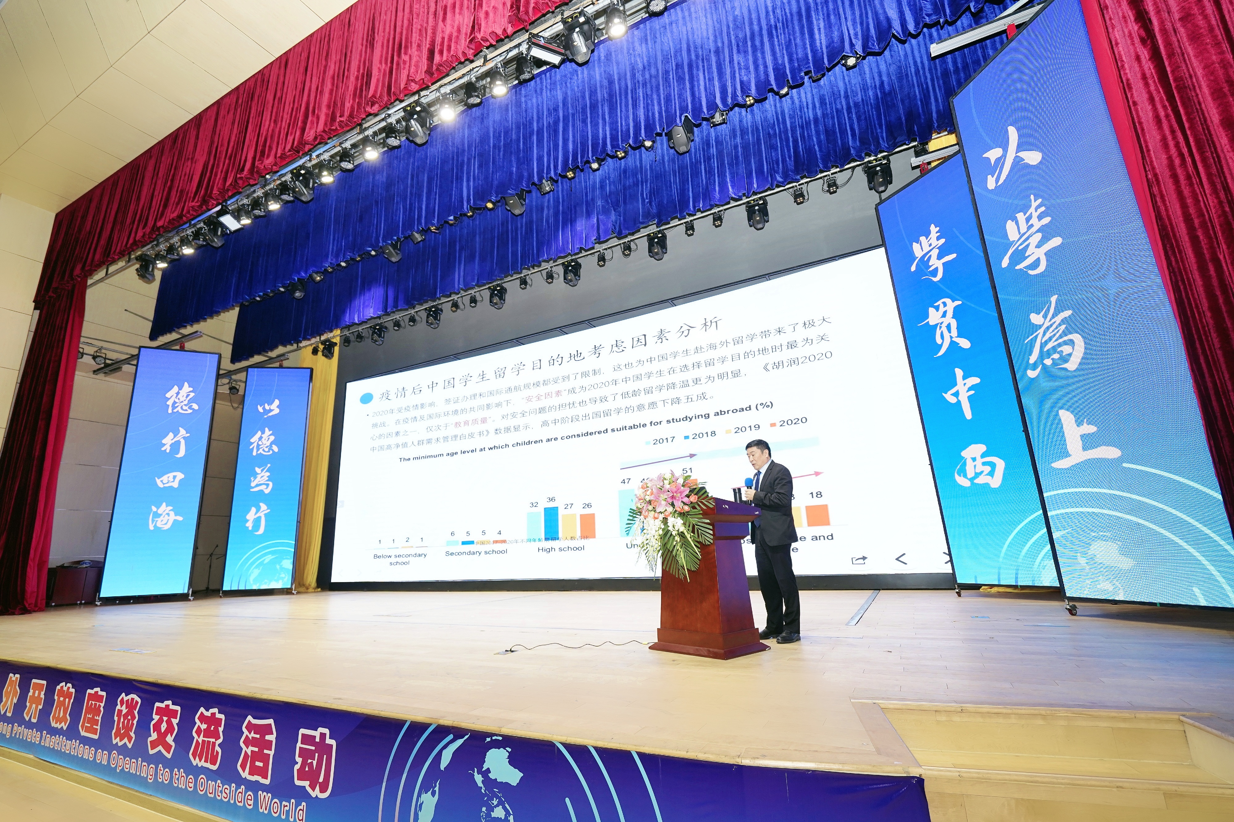 在会议主论坛上,伟德官网李树英执行校长作《后疫情时代跨境交流与合作的机遇与挑战——以大湾区为例》的主题报告。他从疫情前、后留学市场情况变化、疫情后留学生出国意愿分析、疫情后现阶段留学市场趋势分析、怎样与港澳高校开展各类交流合作等方面作详细汇报,并具体指导怎样与港澳高校开展交流合作以及后疫情时代高校国际化发展的着重点等方面分享交流。李树英教授提出,为了应对疫情对国际化交流的影响以及高校在未来更好的国际化发展,相关高校应当加强在地国际化的建设,提升校园标识、英文网站、信息化技术水平,充分做好对外汉语教师培训和储备、教师队伍的国际化视野的提升、英语语言和文化方面的在地学习和提升等方面准备,迎接疫情缓解后的开放窗口机遇。