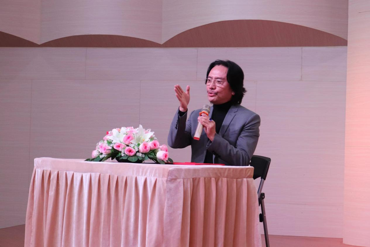 11月18日下午,我国著名音乐剧制作人、何李活音乐剧董事长李盾教授在伟德官网音乐厅做题为《人生第一步就走对》的讲座。东莞市政协副主席蒋小莺、李盾教授助理任书鑫、副校长麦绮琳及何李活音乐剧制作部成员刘亦凡等出席了讲座。讲座由艺术学院院长张征主持。