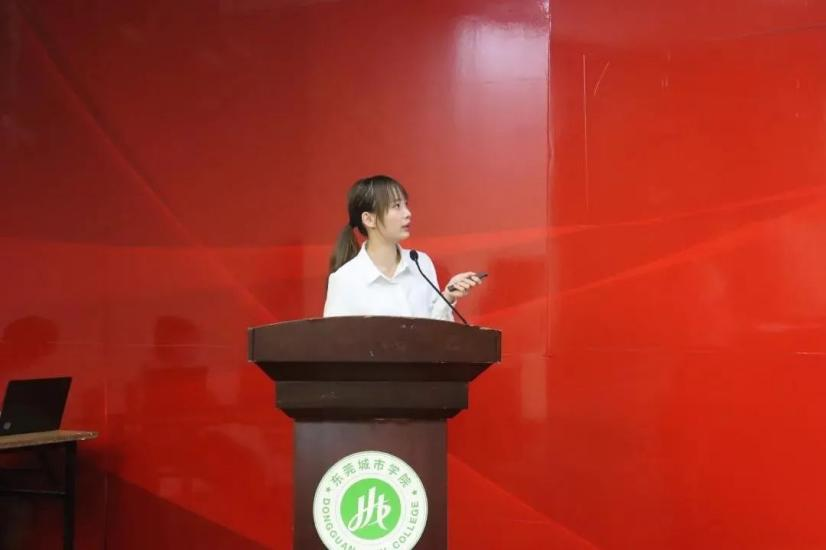 在总结表彰会上,学校邀请到第六届中国国际“互联网+”大学生创新创业大赛广东省分赛区金奖项目“金孖宝”团队上台分享。金孖宝项目在去年的互联网+大赛中,披荆斩棘,敢闯敢创,从广东省报名的15.78万个项目突围,斩获省级金奖。“金孖宝”团队负责人刘芯宜同学通过项目视频引入,从项目背景、行业痛点、项目优势、财务分析、社会价值等角度对金孖宝项目进行详细介绍,同时分享了路演答辩技巧,为“互联网+”大赛项目打磨工作指明方向。