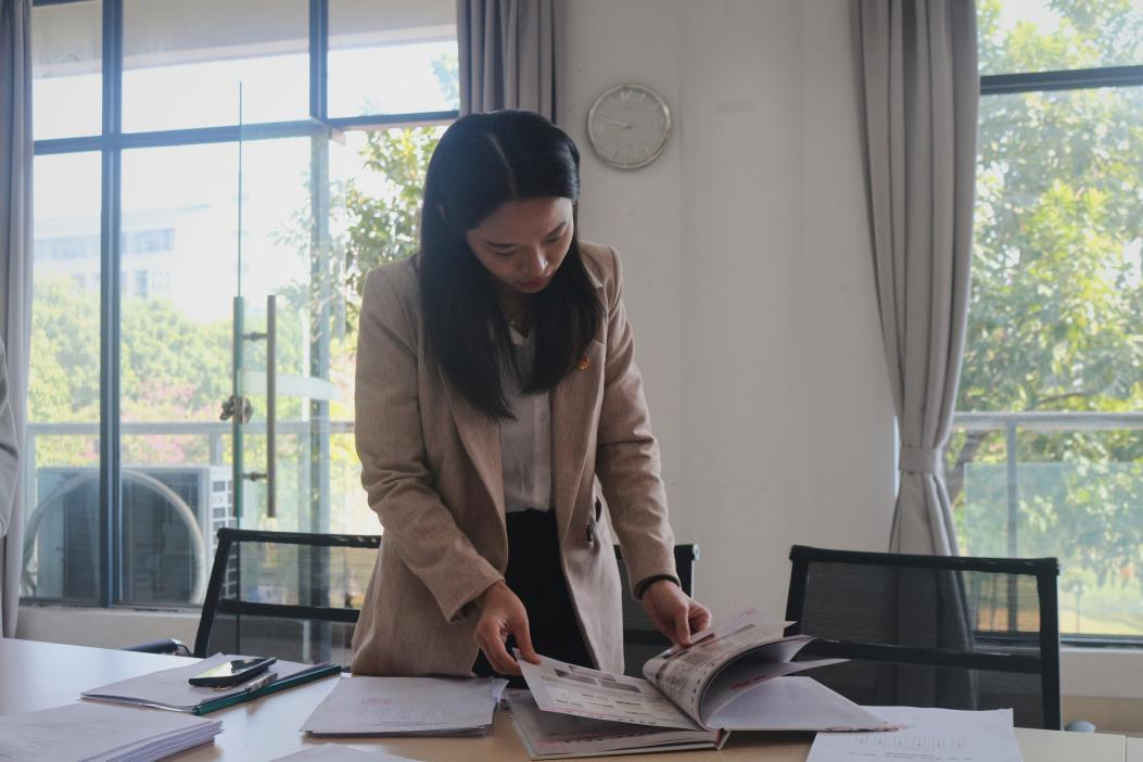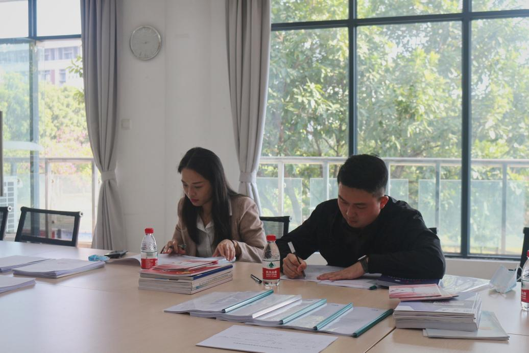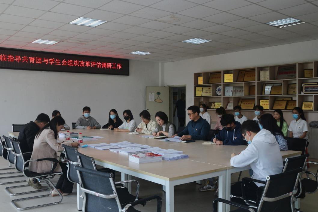 工作汇报后,团市委评估调研小组人员对二级学院学生会工作人员进行逐一访谈,并仔细检查佐证材料。
