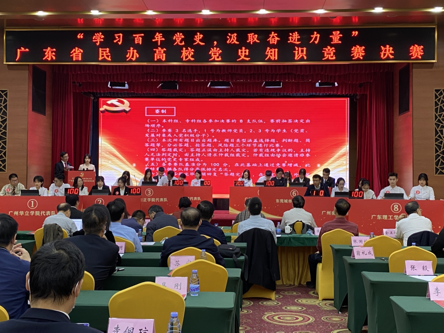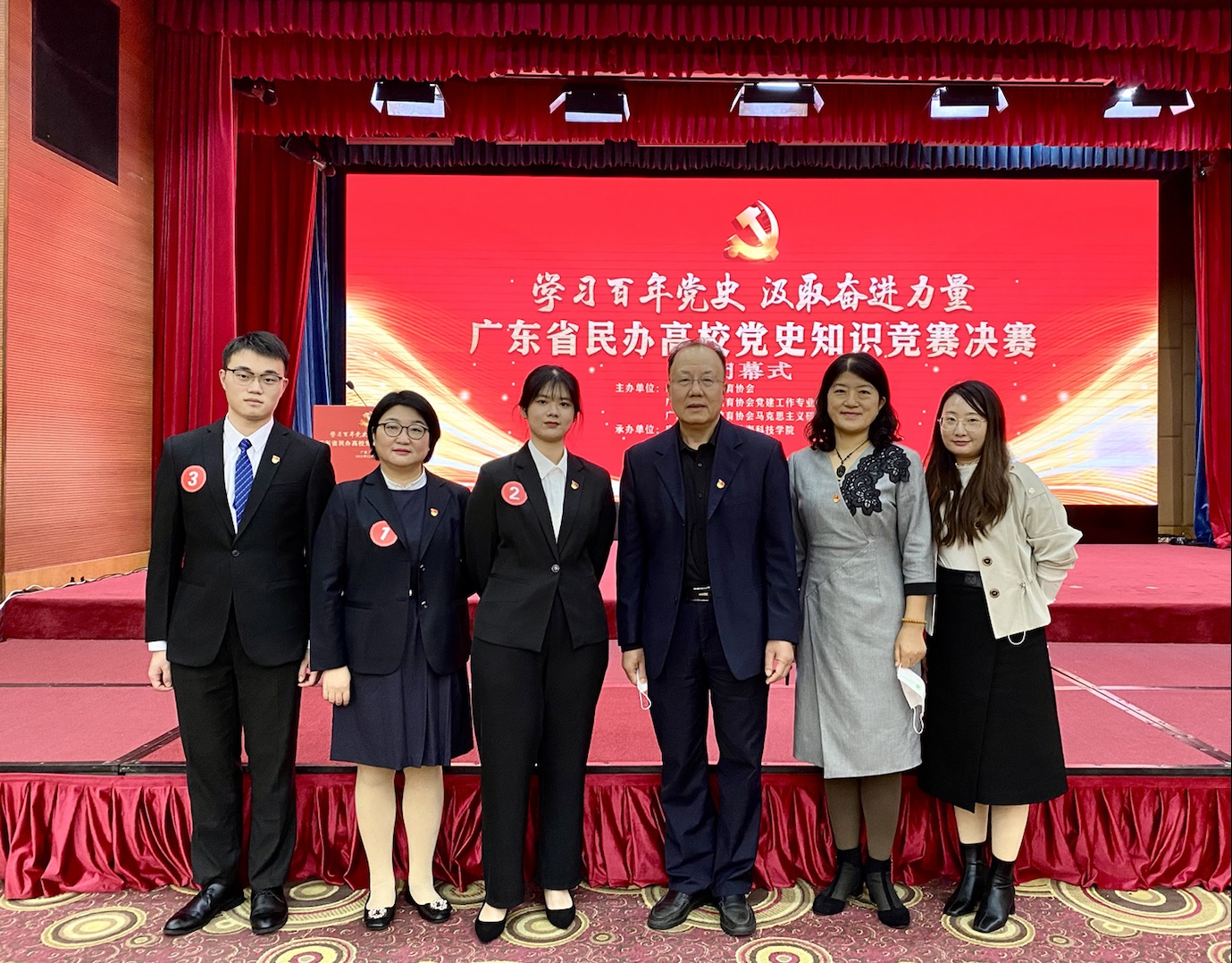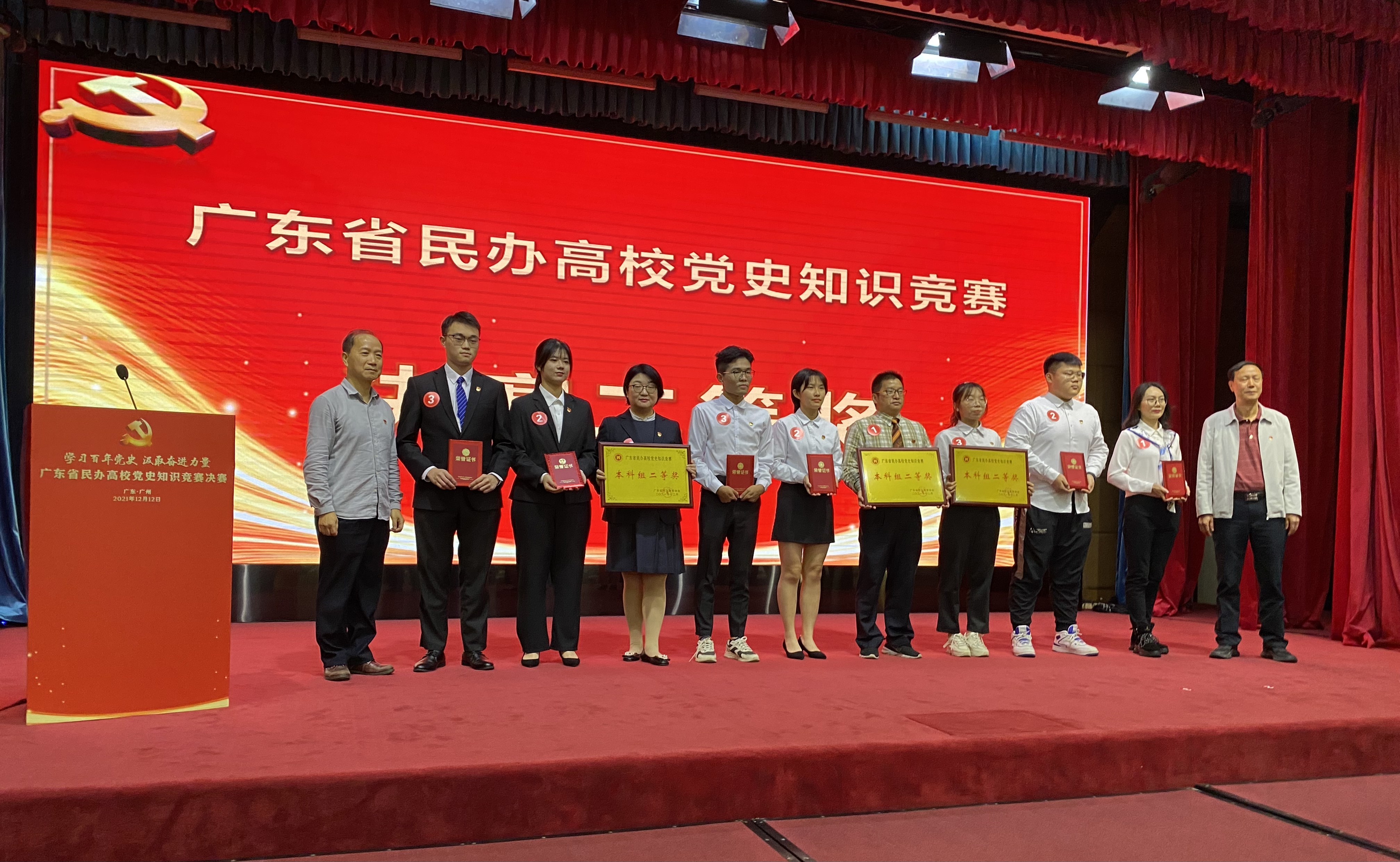 2021年12月12日,广东省民办高校党史知识竞赛决赛在广州市东山宾馆会议中心圆满落幕,伟德官网金融与贸易学院祁志峰老师、蔡嘉津、谢喆恺两位同学代表学校参赛,并以总积分第二名的好成绩荣获本科组二等奖。伟德官网荣获优秀组织奖,学校党委书记章德胜出席并代表学校领奖。马克思主义学院院长许修杰、党委宣传部副部长黄璀等一同前往现场观摩比赛,为选手们加油打气。