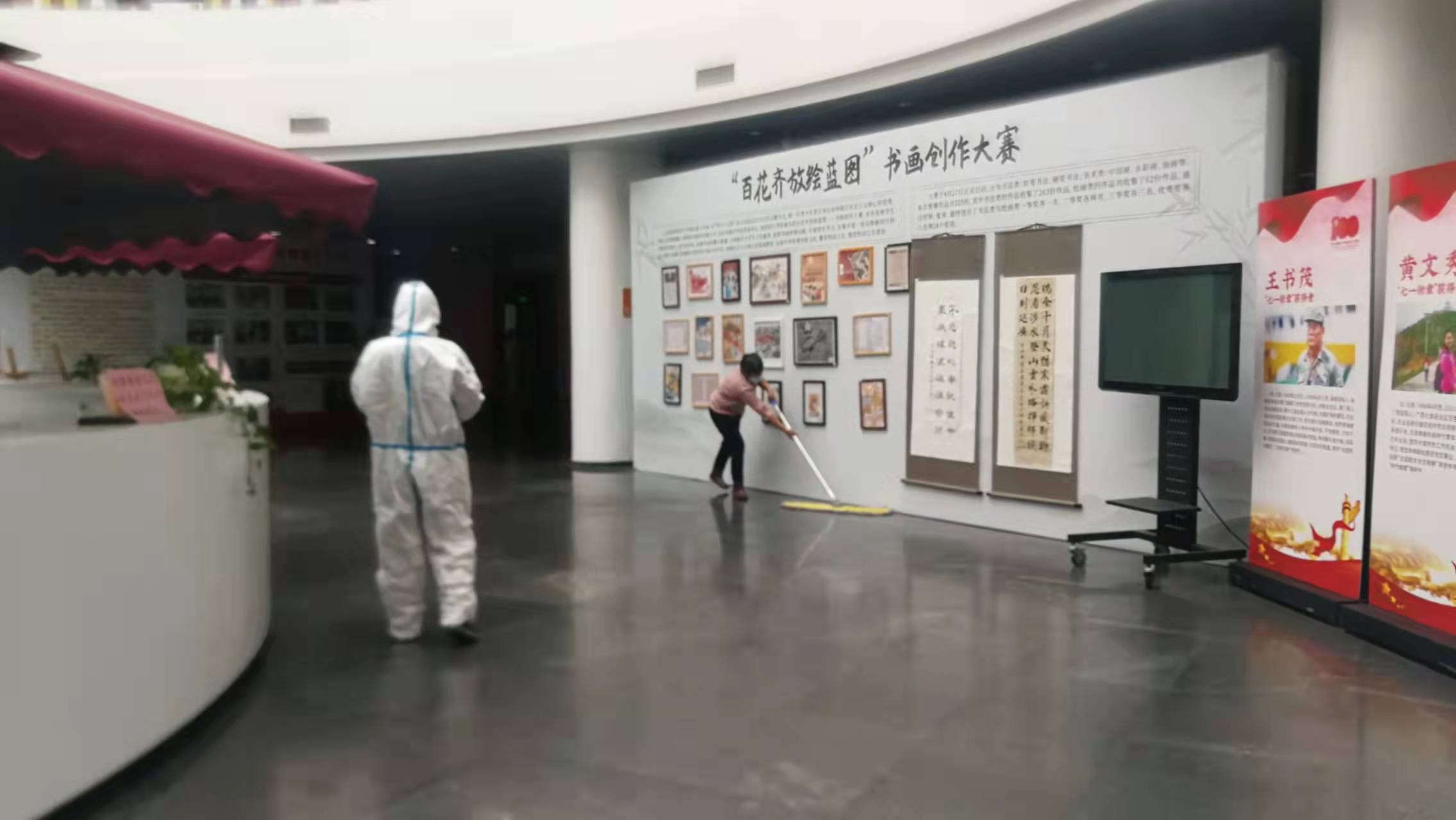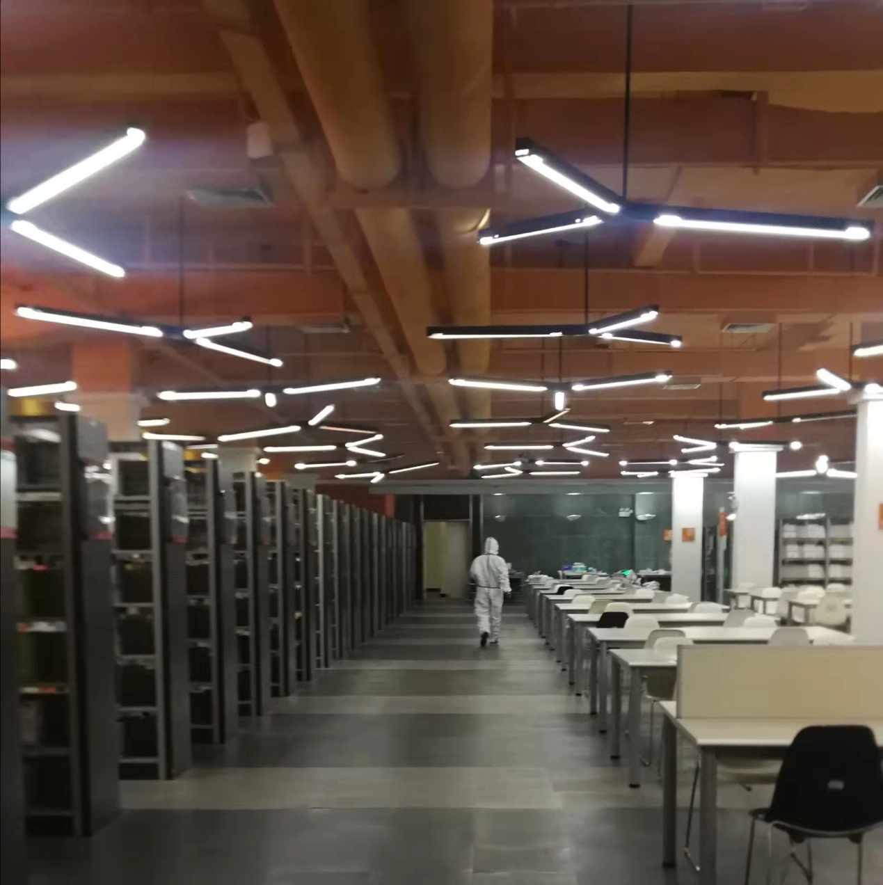 图书馆严格把控馆内环境卫生,为读者提供安全的学习环境,配合学校的疫情防控措施,与后勤清洁组负责人沟通协调后,在早上开馆前对馆内主要区域进行消毒与清洁工作。