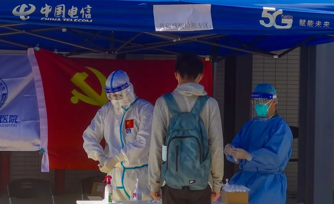 2021年12月14日,东莞疫情暴发,学校当天紧急开展核酸检测。鲜红的党旗下,是党员站在一线为学生进行核酸检测。党旗永远飘扬在人民的最前线,党员在危难关头挺身而出肩扛重任,守护着祖国和人民。新时代青年在党旗下成长,在党旗下集结,朝气蓬勃,共克时艰,始终与党同心同行!