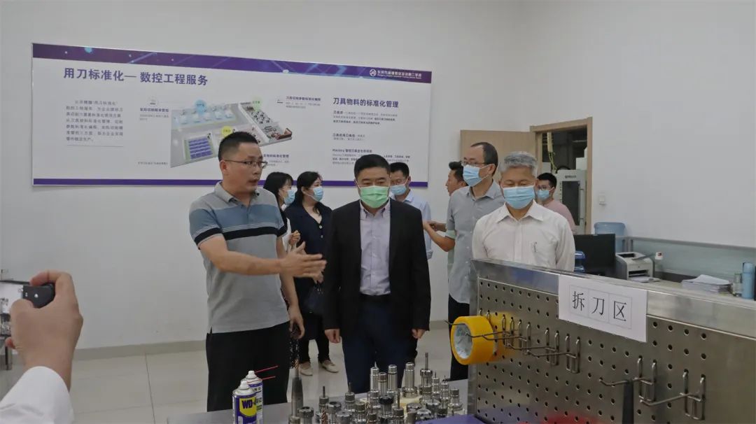 在黄校长的带领下,李树英执行校长一行参观了北京精雕教学楼展厅、五轴车间、刀具坊以及恒温车间,其间,黄波校长向大家介绍了北京精雕的优质产品和发展理念。