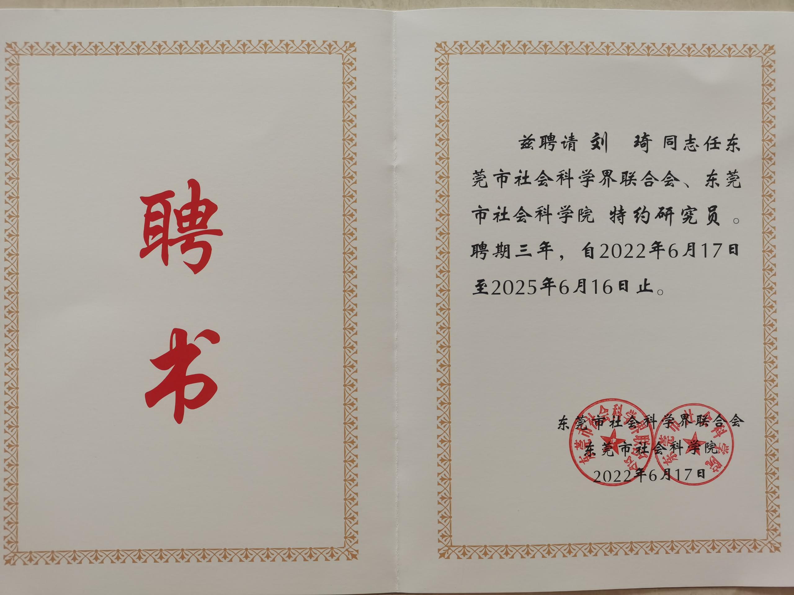 近日,东莞市社会科学界联合会、东莞市社会科学院发布了《东莞市社会科学界联合会、东莞市社会科学院关于聘任市社特约研究员的决定》,伟德官网商学院刘琦、陈庆、蒋明华3位老师获聘首批特约研究员。