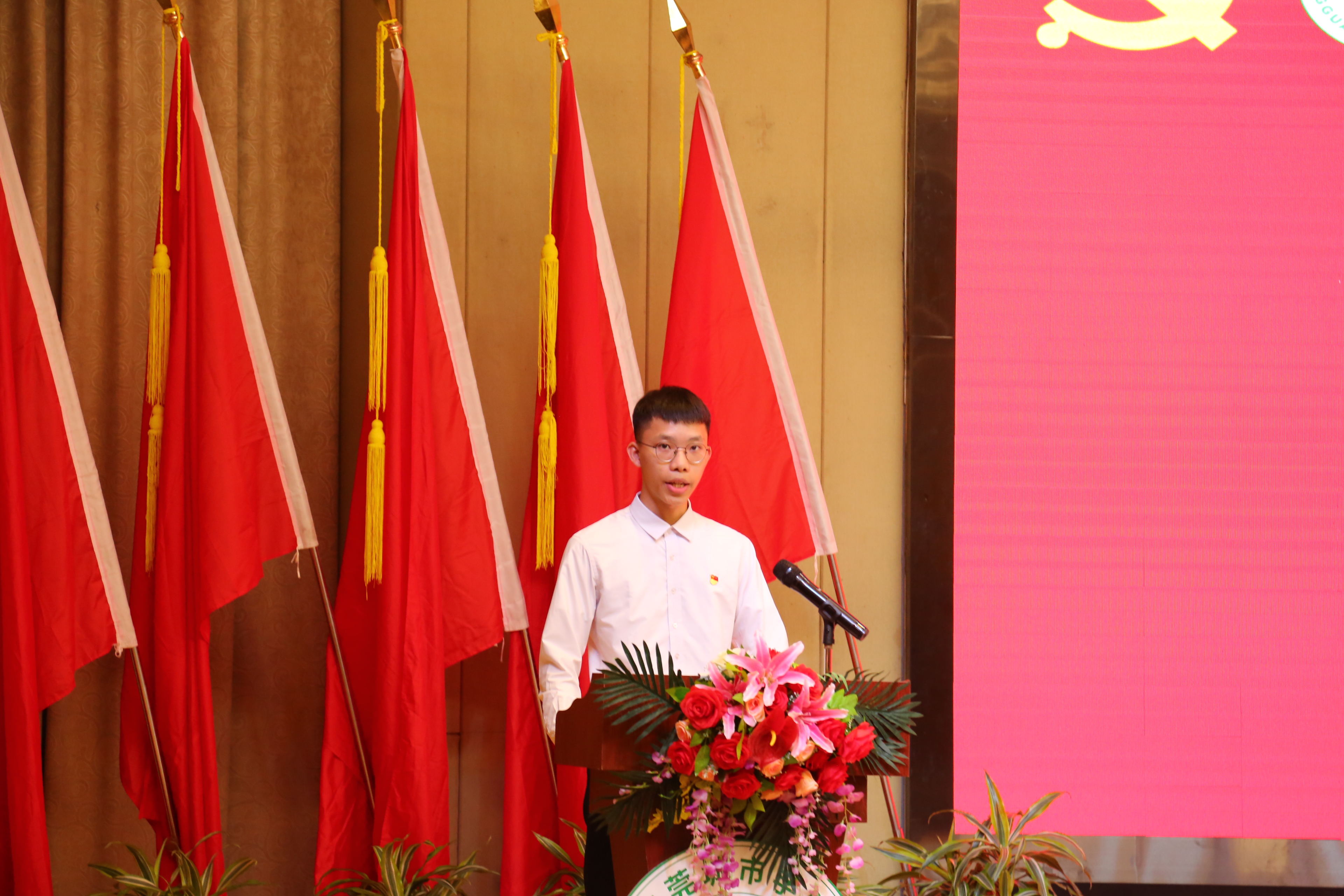 会上,先进基层党组织代表商学院党总支书记唐洁,优秀学生党员代表智能智造学院学生第二党支部刘晓炜分别作了发言。