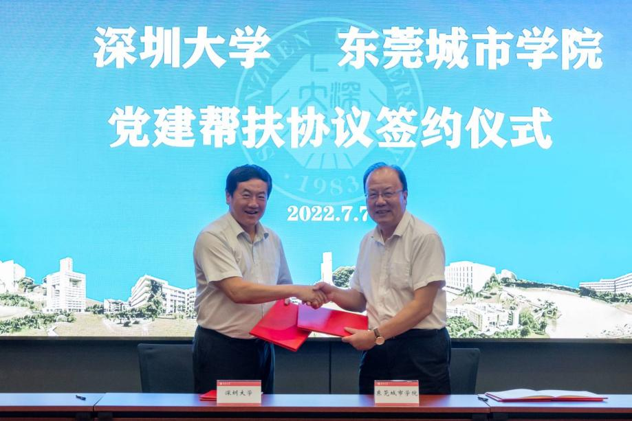 交流座谈结束后,深圳大学党委副书记范志刚与伟德官网党委书记章德胜签署党建“组团式”帮扶协议。