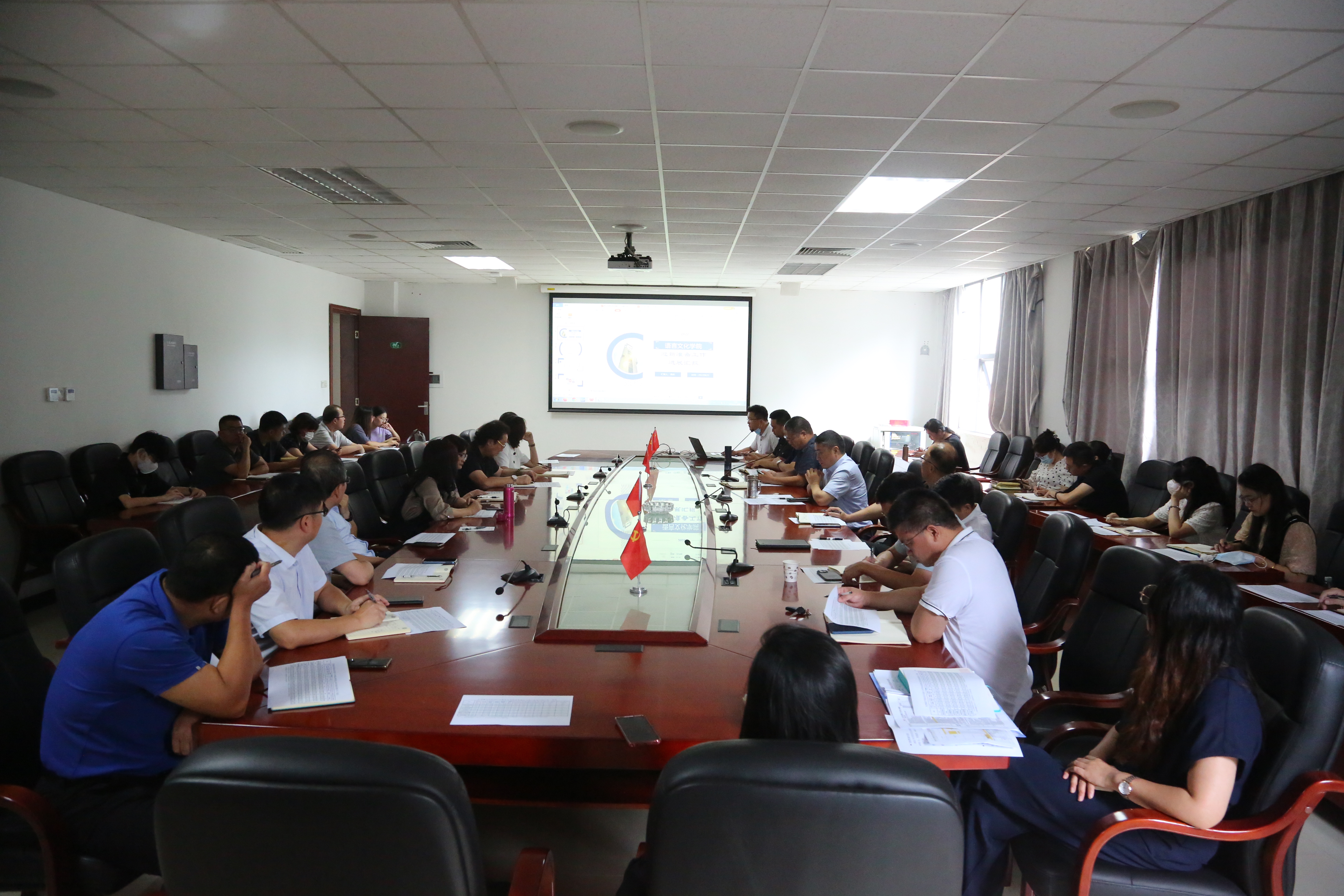 会上,学生处处长蔡小锋通介绍了2022年迎新工作方案,包括迎新分批次报到安排、新生报到流程、校园接驳车路线安排、迎新志愿者站设置、报到入住现场安排以及迎新工作主要任务及职责分工。随后,各职能部门逐一汇报了迎新工作准备情况,语言文化学院代表二级学院汇报了迎新工作准备情况及新生报到后相关工作安排。汇报完毕后各与会人员就迎新工作各项细节进行深入讨论。