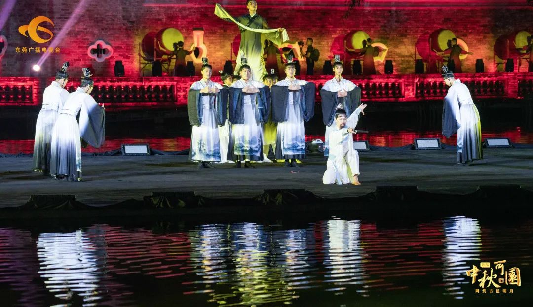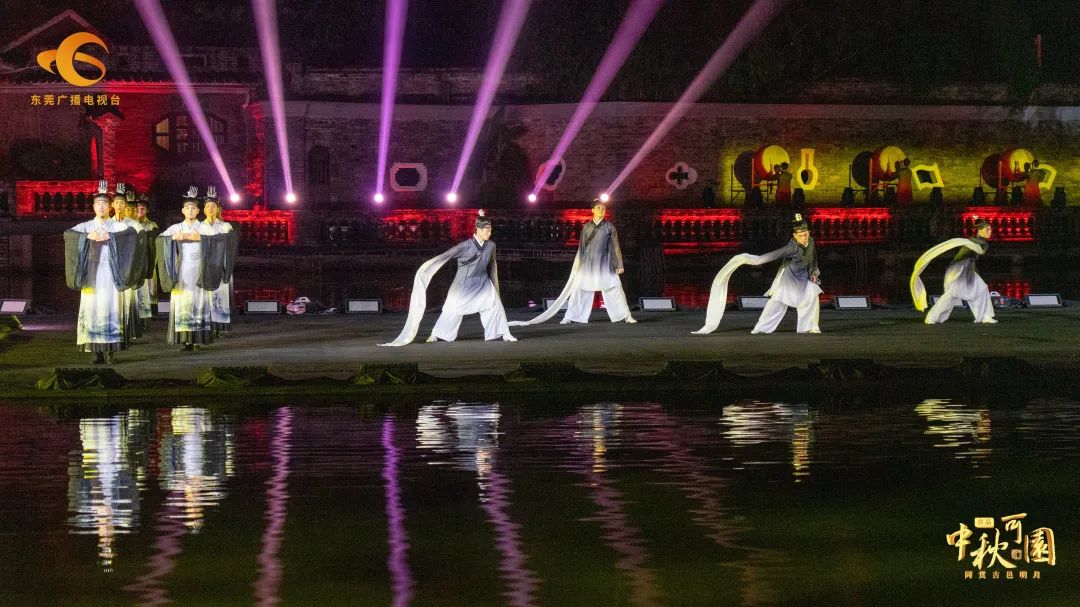 9月9日晚,“中秋可园——岭南园林实景秀”在可园实景上演,本场演出以可园建筑为背景,以可园主人张敬修与晚清岭南著名花鸟画家居巢、居廉等文人雅士的故事为原型进行编创,以实景演出的方式,演员们在水中起舞,气势磅礴,扣人心弦。还原一场穿越百年的“中秋家宴、诗画雅集”中秋文旅夜主题活动。古风古韵的歌舞,辅以现代的声光电技术,与莞邑文化深度融合,为全球网友奉献了一场具有思想性和观赏性的视听盛宴。