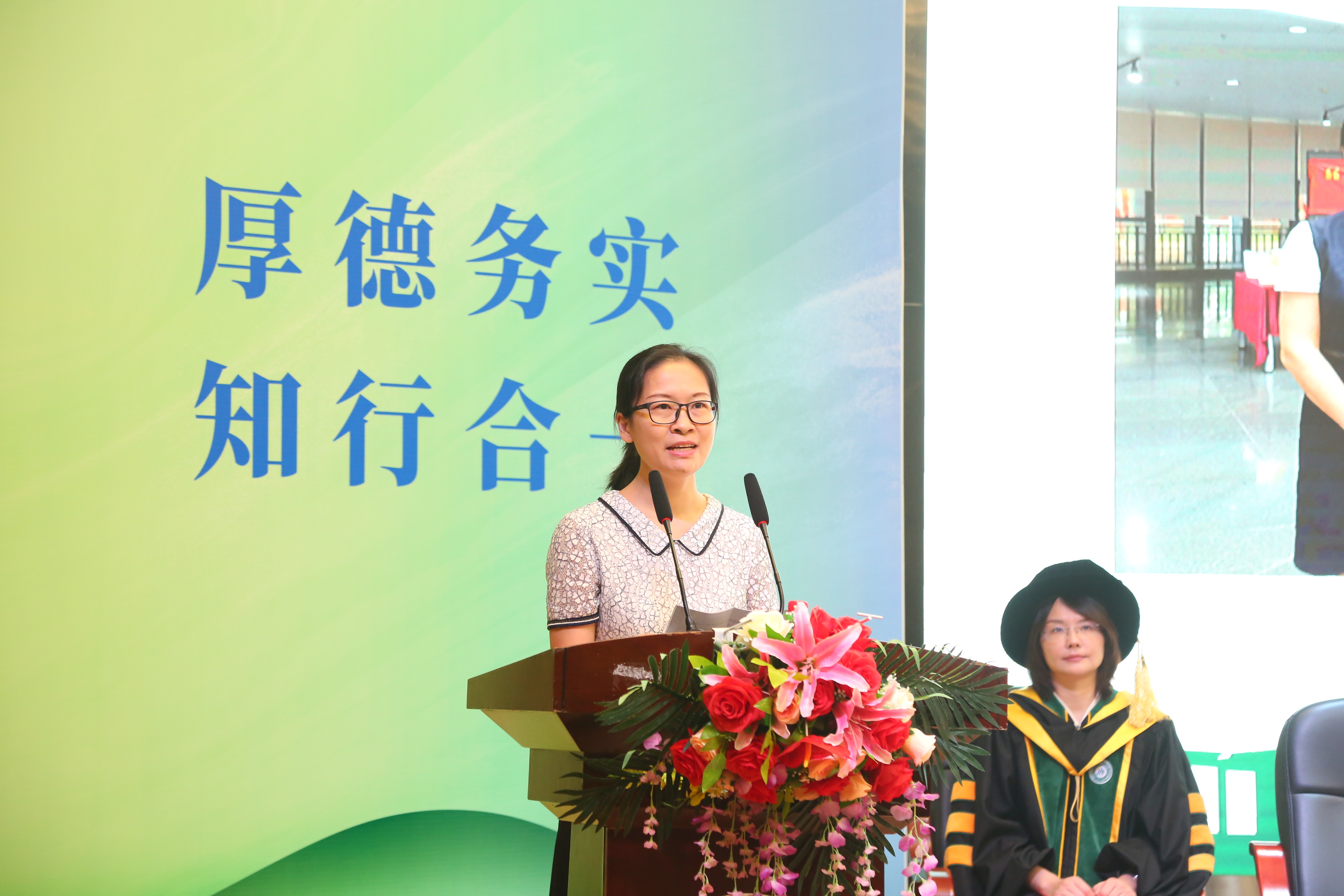 商学院副院长张洪副教授作为教师代表作了发言,她说,作为老师,深知肩负的责任和使命,将会秉持爱岗敬业的信念,“明德乐业、博学善教”的教风,做同学们的良师益友。对于新同学,她希望大家做好学业规划和职业规划,进一步认识自己,找到并明确努力的方向;要努力耕耘,发奋学习;要注重培养个人的专业素养、人文修养、创新创业能力和终身学习能力,抓住机会开阔眼界、增长见识,努力成长为具有家国情怀、创新精神、国际视野的新时代高素质应用型人才。