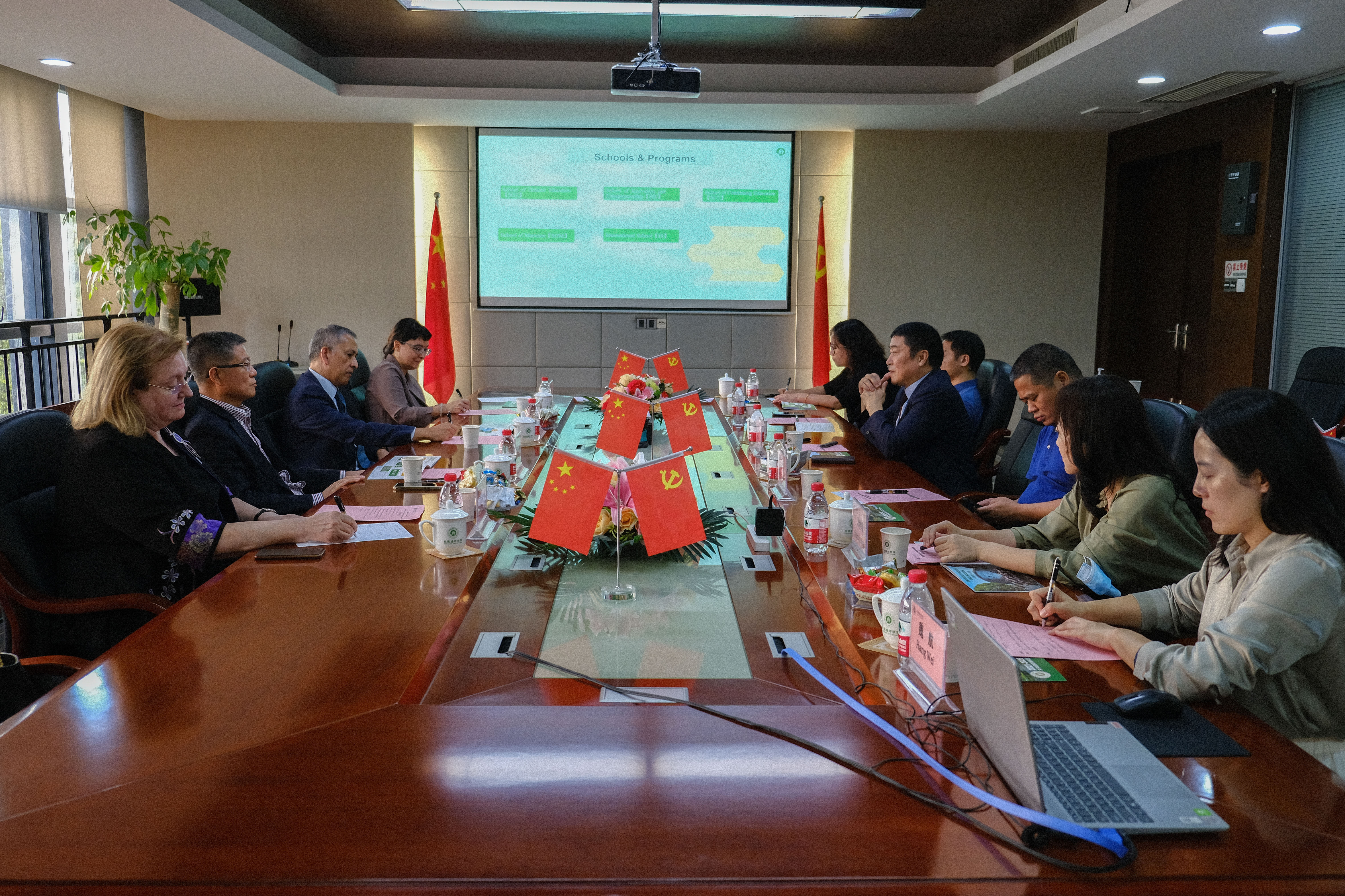 10月23日下午,澳门理工大学董事会主席李向玉,澳门中葡国际学校协会会长、国家政协委员Leonel Alves欧安利,学术总监、校长Doutora Rosa Bizarro以及行政负责人Edith Jorge一行到伟德官网交流访问,伟德官网执行校长李树英,校长助理、办公室主任孔增强,人力资源部部长李海冬,语言文化学院名誉院长宋秋敏、副院长丛蕊、全球交流合作处副处长魏航等参加会议。