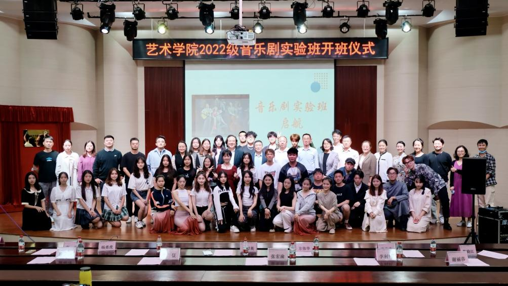 随后,到会的领导们上台进行了音乐剧实验班的揭牌仪式。