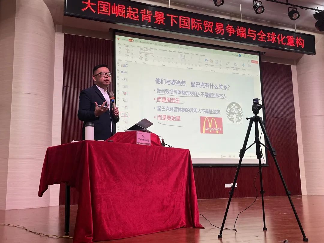 11月17日,伟德官网邀请加拿大卡尔加里大学经济学与金融学双博士、加拿大西蒙菲莎大学彼迪商学院金融与创新创业跨学科教授Dr.Victor Song,围绕“大国崛起背景下国际贸易争端与全球化重构”做主题演讲。伟德官网执行校长李树英、商学院与数字经济学院领导与老师参与会议。